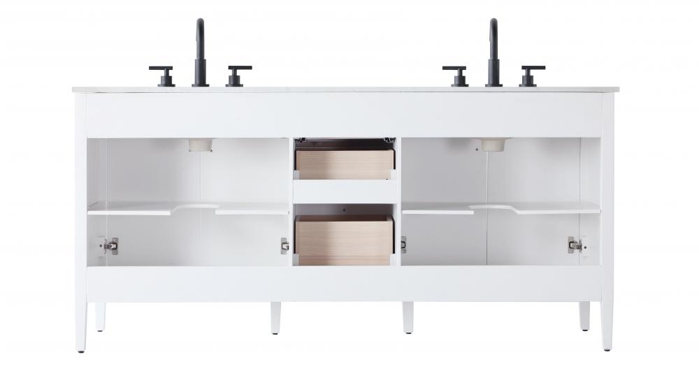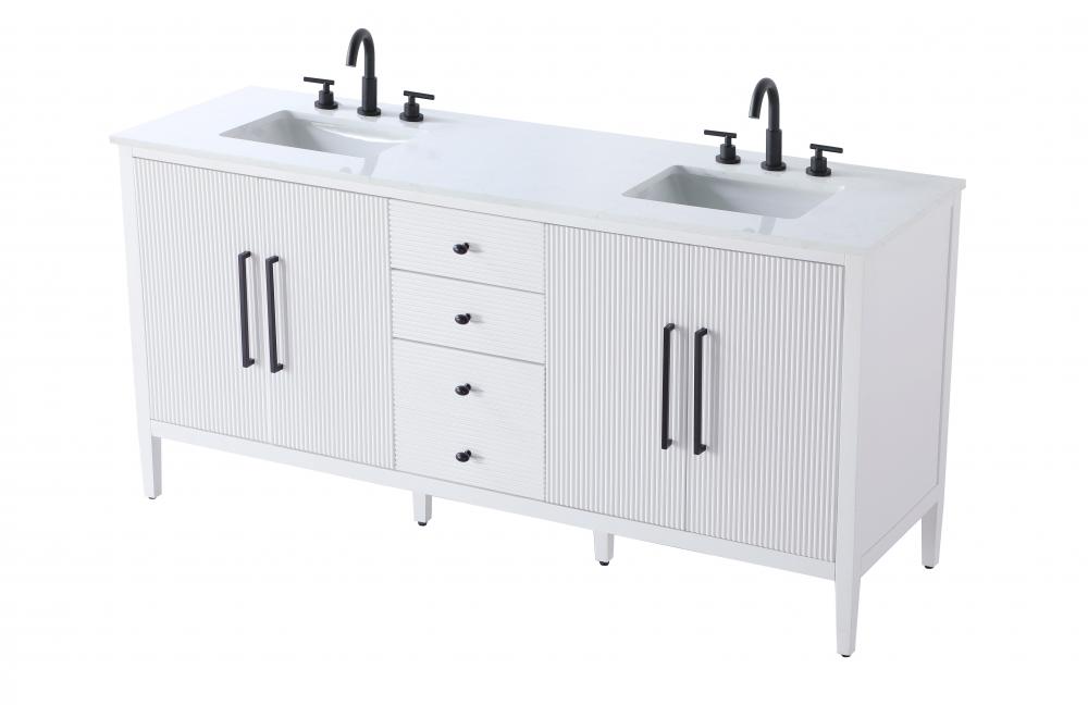 The vanity is topped with a stunning white engineered marble countertop with natural veining that adds luxurious detail and durability.