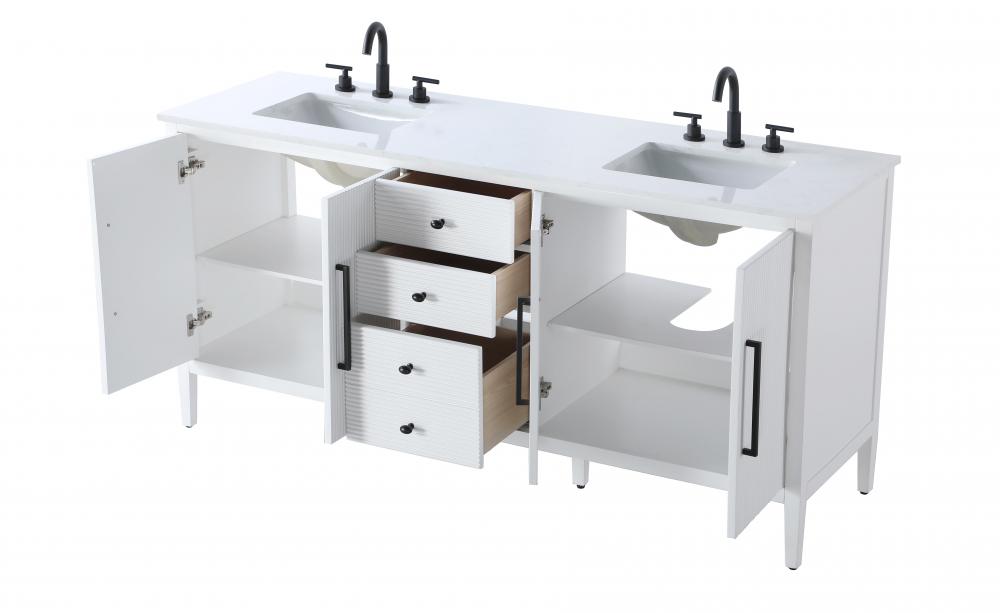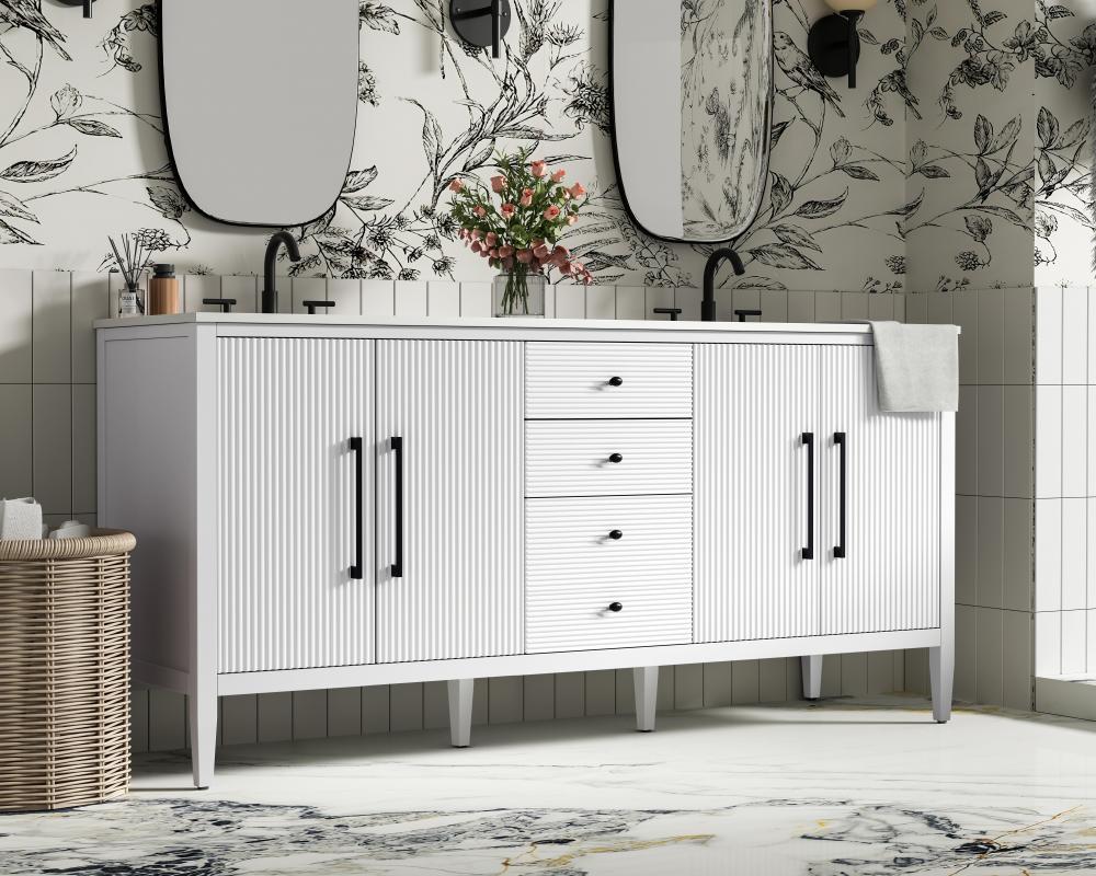 Designed with transitional elegance in mind, this bathroom vanity seamlessly blends traditional elements with modern functionality. Available in five stunning finishes, from the clean sophistication of Crisp White to the natural warmth of Honey Oak, the fluted door and drawer panels add subtle texture and charm. The white engineered marble countertop with natural veining exudes luxury, while the soft-closing doors and drawers with sleek black metal pulls offer a quiet, refined experience. Practicality is never compromised, with features like the U-shaped shelf for plumbing, deeper bottom drawer for ample storage, and pre-drilled faucet holes for easy customization. Whether your style leans modern or classic, this vanity is the perfect balance of beauty and function, appealing to customers with a taste for quality and style.