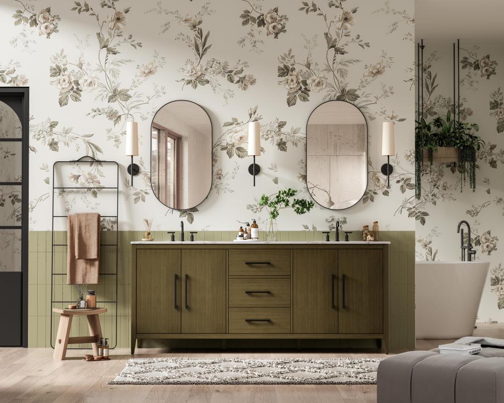 The minimalist flat door panels create a sleek, modern appearance, perfect for blending into transitional and contemporary bathroom designs.