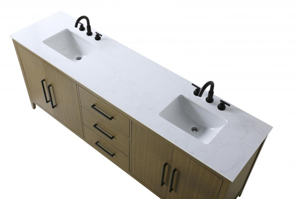 Topped with a white engineered marble countertop featuring elegant veining, this vanity adds a luxurious yet durable surface that’s easy to maintain.