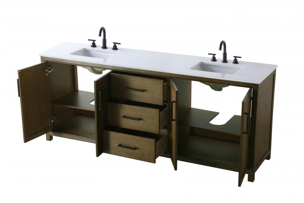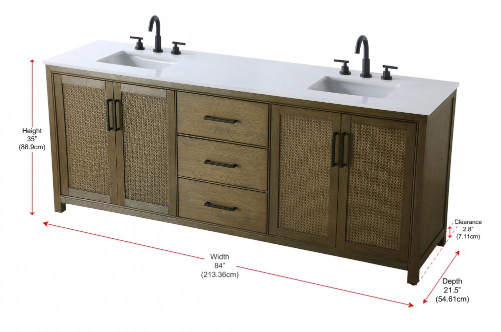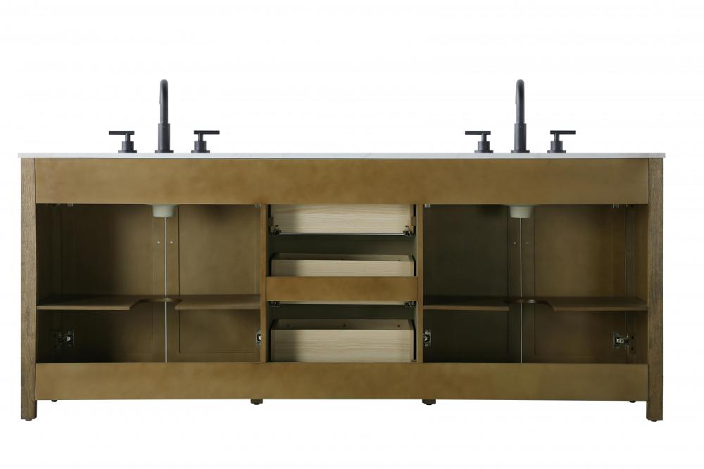 The 84-inch vanity ships partially assembled, with the countertop requiring secure installation, making the setup quick and easy.
