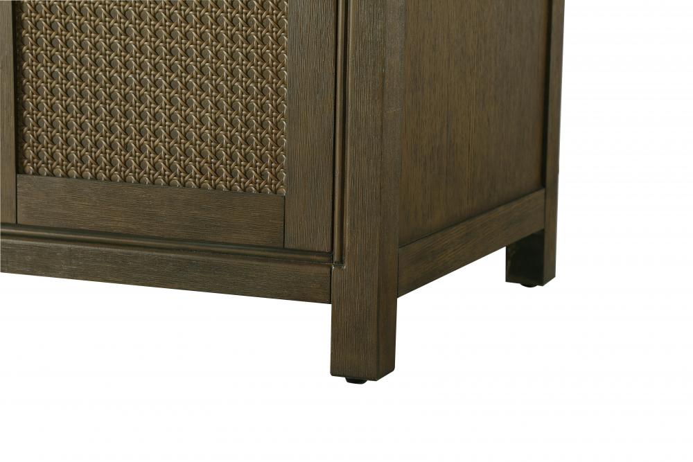 The shaker-style door panels feature a subtle caning design, adding texture and visual interest while maintaining a clean and timeless aesthetic.