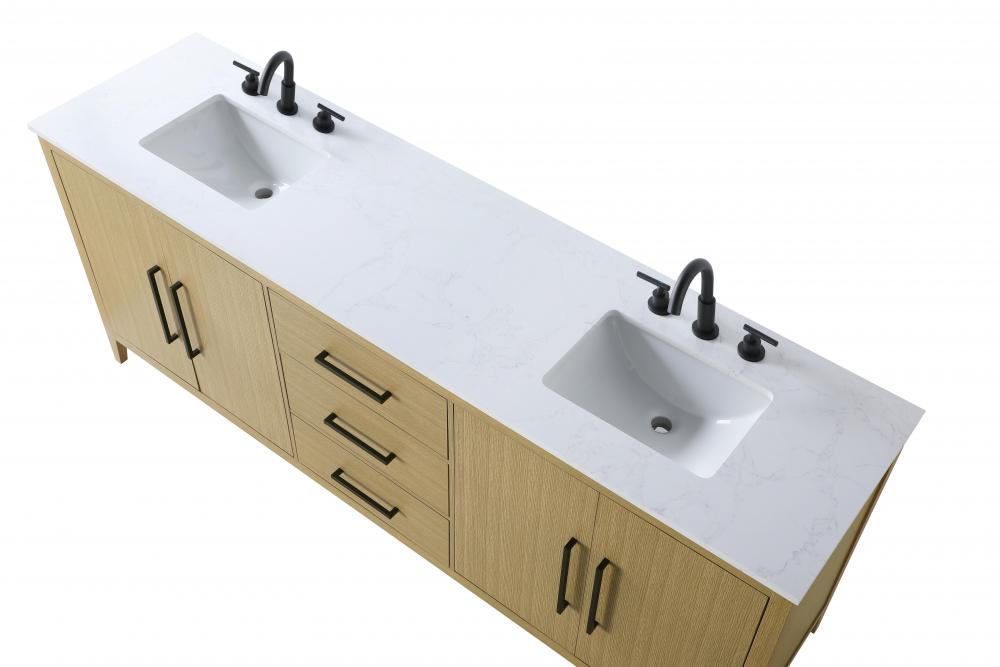 Topped with a white engineered marble countertop featuring elegant veining, this vanity adds a luxurious yet durable surface that’s easy to maintain.