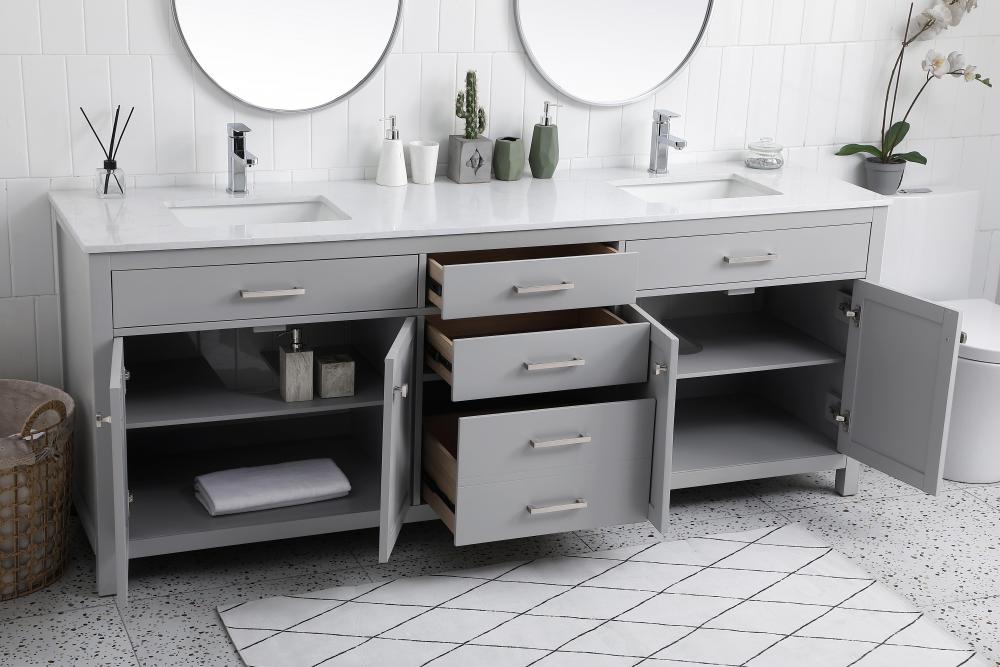 Our vanity features fully functional drawers that are soft-closing and spacious, offering ample room for your bathroom essentials. Keep your countertop clutter-free and organized, promoting a serene and inviting atmosphere.
