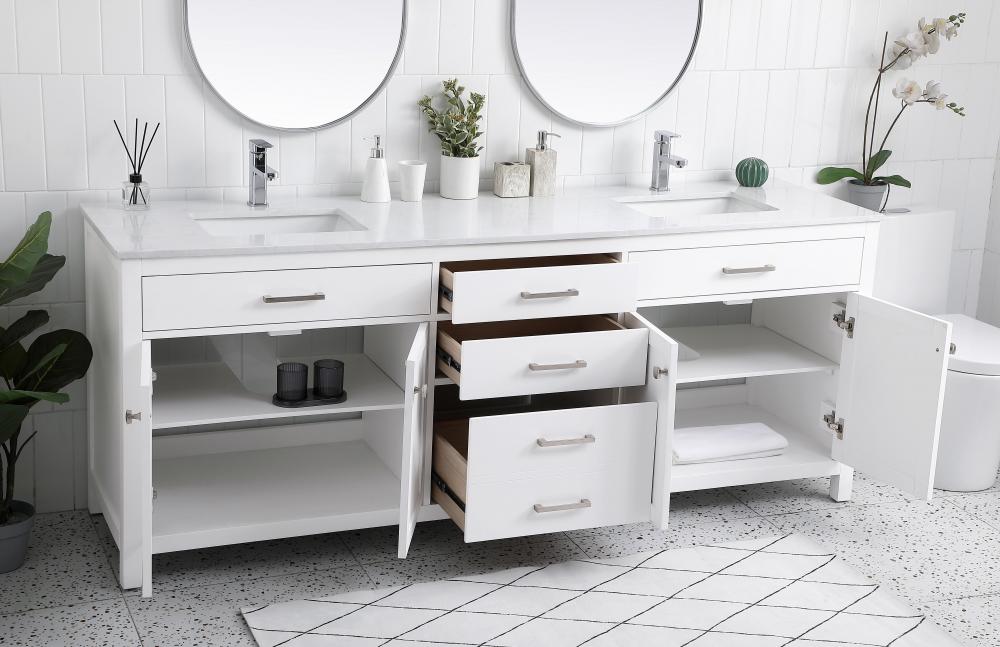 Our vanity features fully functional drawers that are soft-closing and spacious, offering ample room for your bathroom essentials. Keep your countertop clutter-free and organized, promoting a serene and inviting atmosphere.