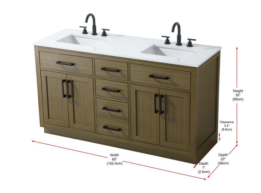 Vanity Cabinet 4Dr5Dw 60"W x 22"D x 35''H Chestnut Brown