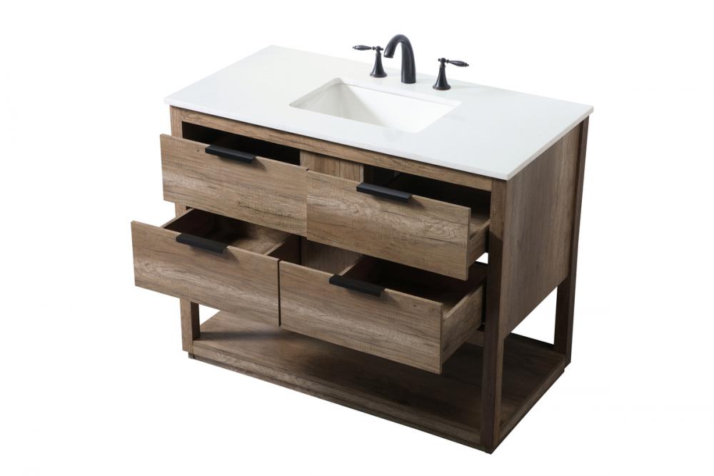 Featuring an open shelf at the bottom for extra storage, the vanity provides a convenient space to showcase decor or store essentials, adding functionality and style to your bathroom.