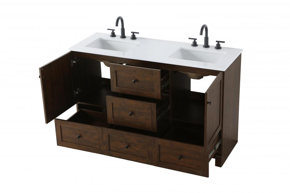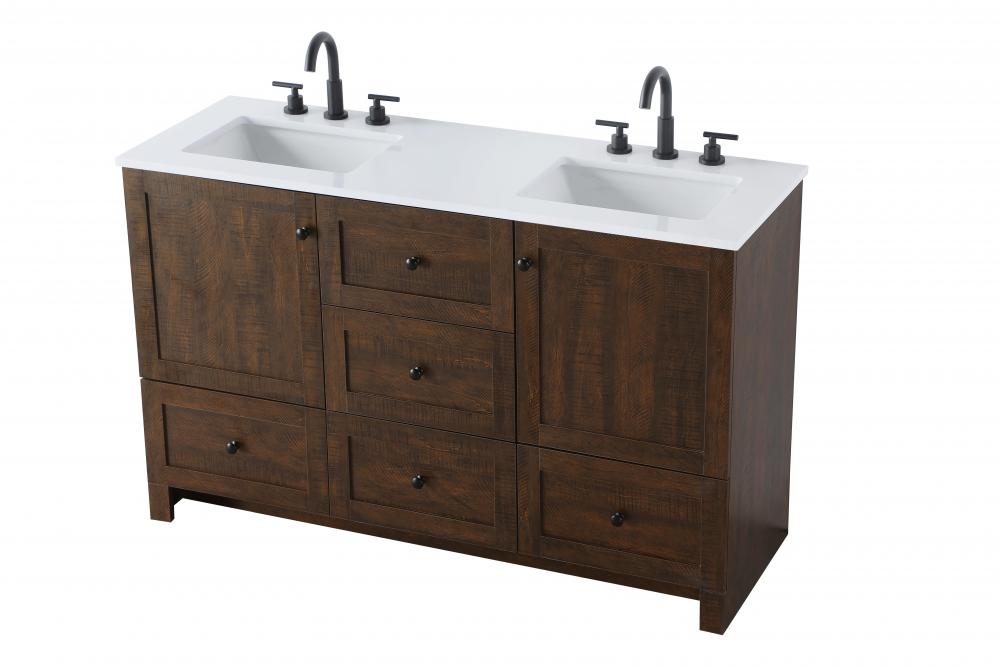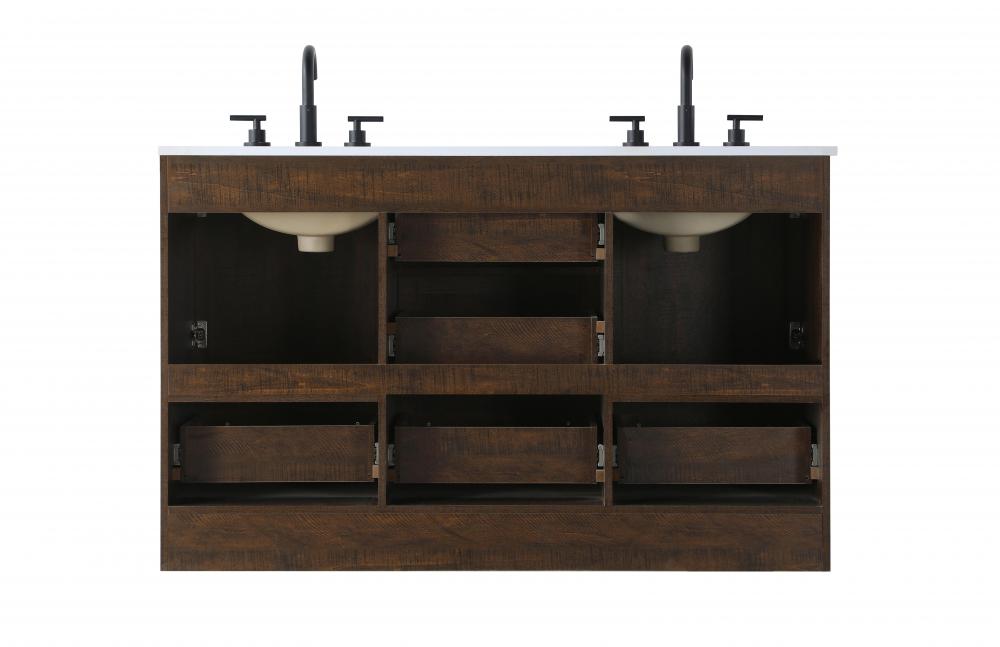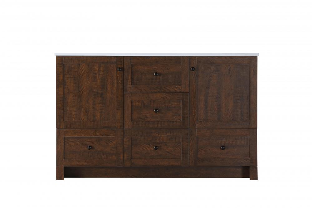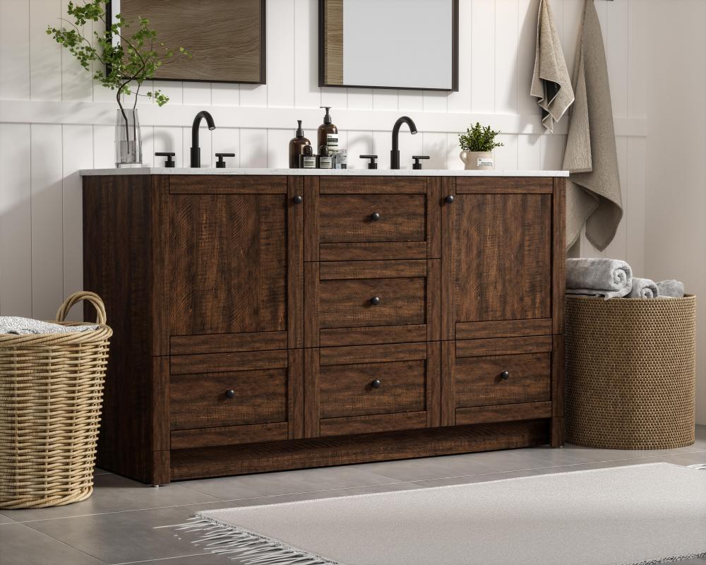 Revel in the beauty of a vanity that mimics the charm of real wood without the maintenance, boasting a faux wood look that adds a touch of natural warmth and rustic sophistication to your bathroom.