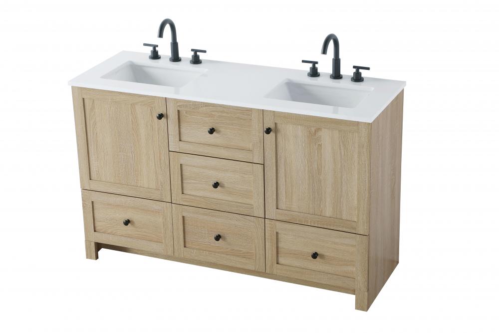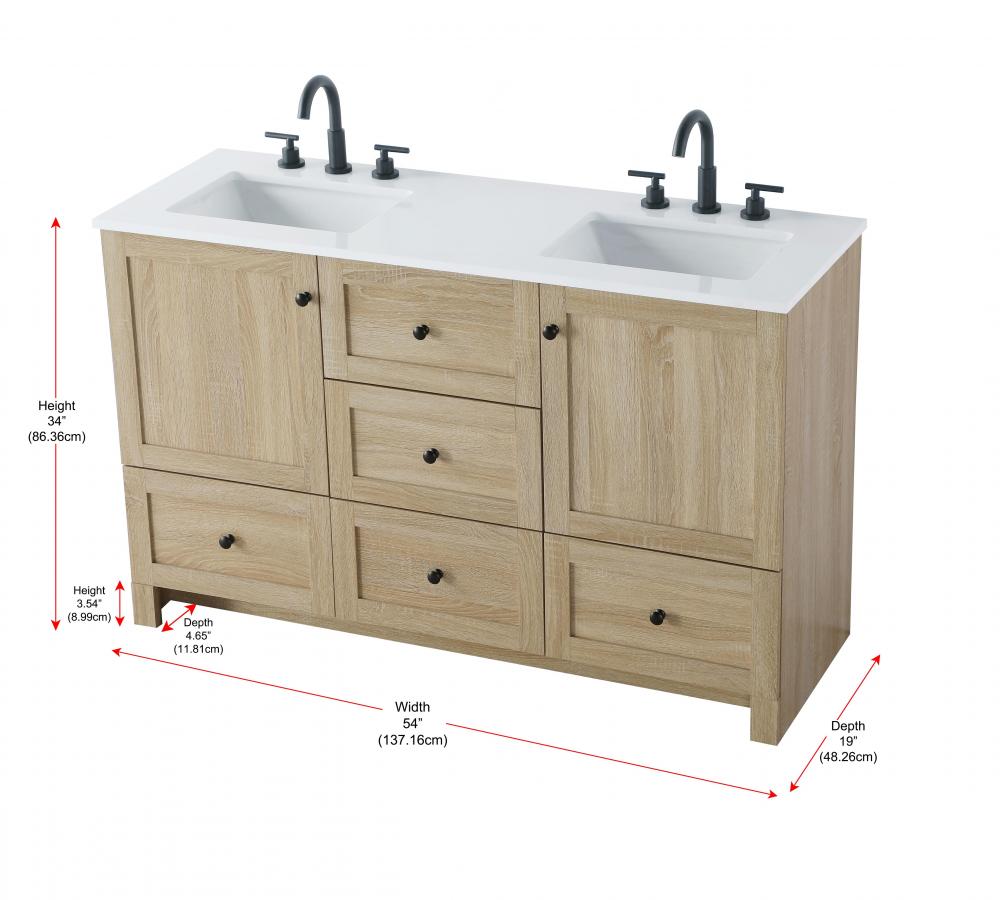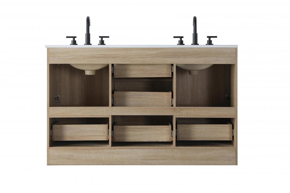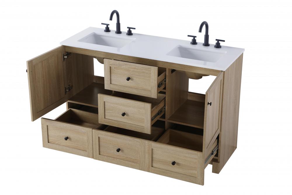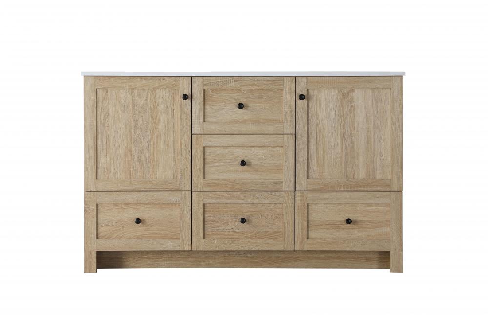 Revel in the beauty of a vanity that mimics the charm of real wood without the maintenance, boasting a faux wood look that adds a touch of natural warmth and rustic sophistication to your bathroom.
