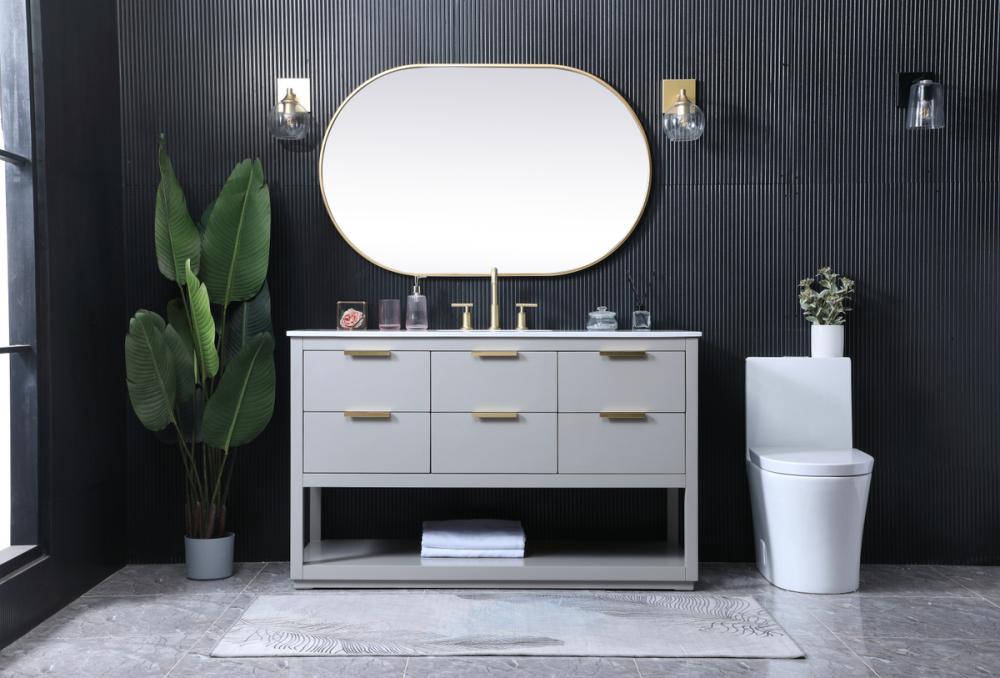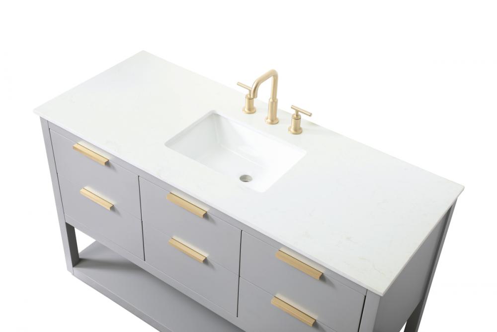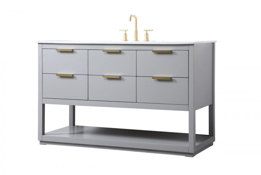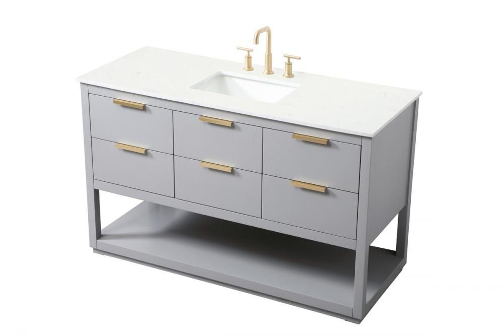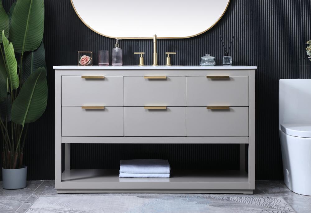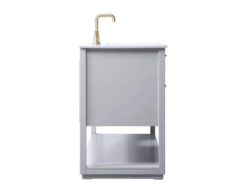 Featuring an open shelf at the bottom for extra storage, the vanity provides a convenient space to showcase decor or store essentials, adding functionality and style to your bathroom.