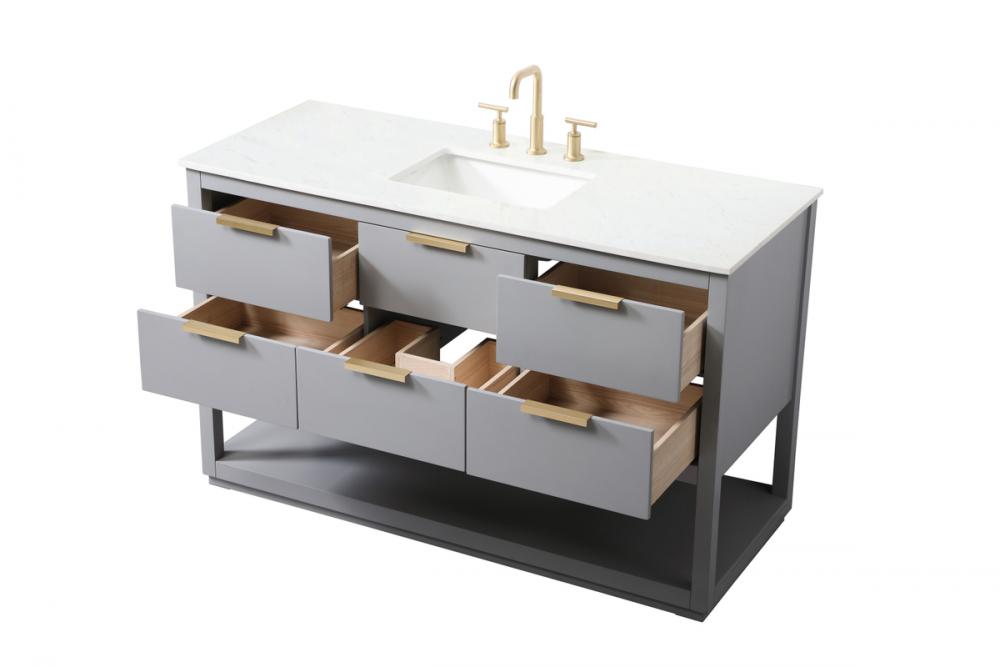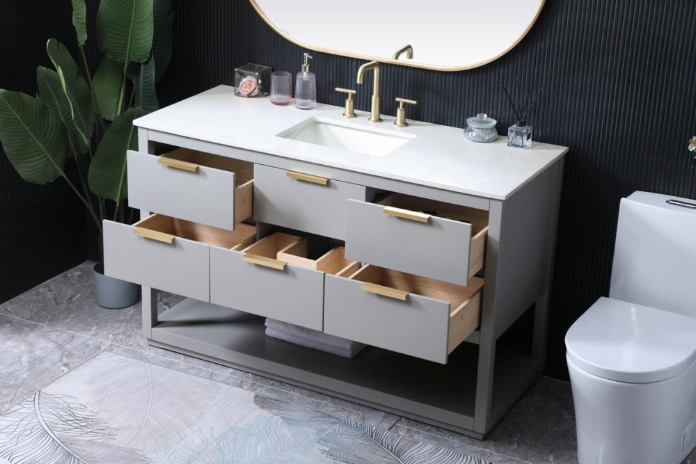 Adorned with 6 sleek pulls, our stylish vanity brings a modern touch to your space, enhancing the overall aesthetic of your bathroom.