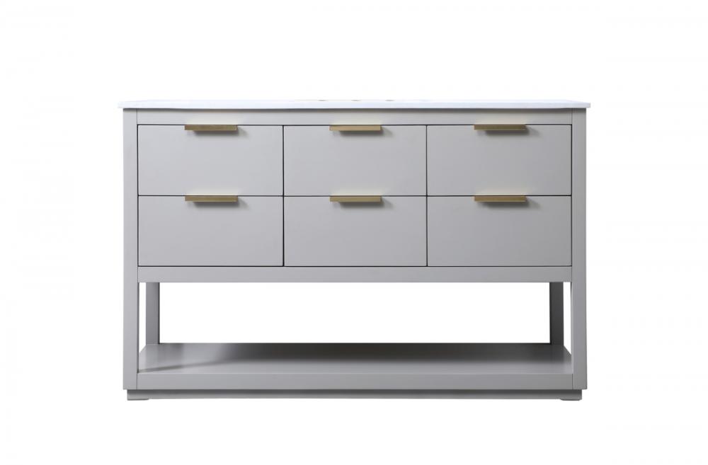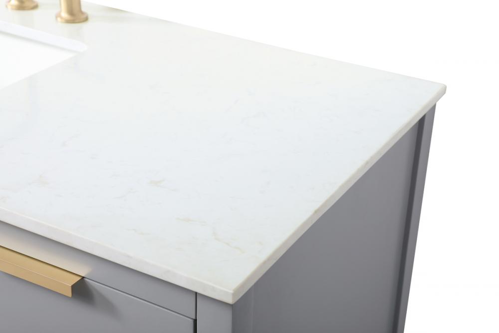 Elevate your bathroom effortlessly with our stylish vanity. Featuring an engineered marble top and chic straight edge cut, it brings a touch of modern elegance. The soft-close drawers, adorned with sleek pulls, offers both convenient storage and a contemporary aesthetic. Completing the ensemble, an undermount porcelain sink adds timeless charm. The vanity's open shelf at the bottom provides extra storage and a space to showcase decor. As a freestanding unit, this hassle-free solution requires no assembly. Customize your space effortlessly with this sophisticated option for instant bathroom elegance.
