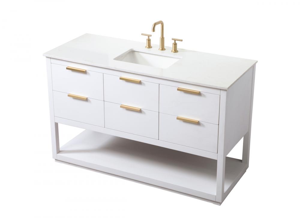 Featuring an open shelf at the bottom for extra storage, the vanity provides a convenient space to showcase decor or store essentials, adding functionality and style to your bathroom.