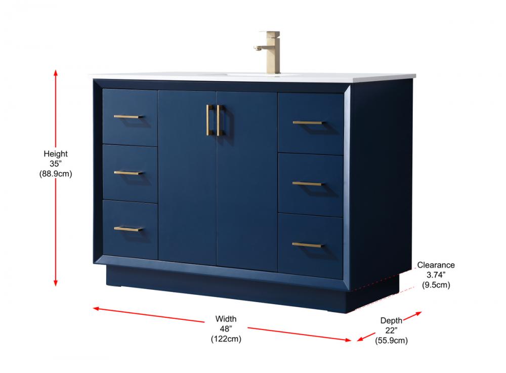 Step into a realm of modern luxury with our freestanding bathroom vanity, featuring a sleek and contemporary boxy design that sets new standards for aesthetics. The engineered marble countertop, with its crisp 0.75-inch straight edge, not only introduces sophistication but also ensures enduring durability. Convenience takes center stage with the undermount porcelain sink, measuring 15.35 inches long, 11 inches wide, and 7 inches deep, complemented by a single predrilled faucet hole for seamless installation. Experience the art of organization through soft-closing drawers and doors adorned with high-quality bar pulls, showcasing meticulous craftsmanship in the precision of butt joint drawers. The vanity, crafted from resilient MDF material, combines elegance with durability, supported by solid wood legs that provide stability and a touch of natural warmth. Elevate your bathroom with this distinctive piece, where the fusion of form and function creates a harmonious dance of modern sophistication, redefining your daily routine with a statement in style and practicality.