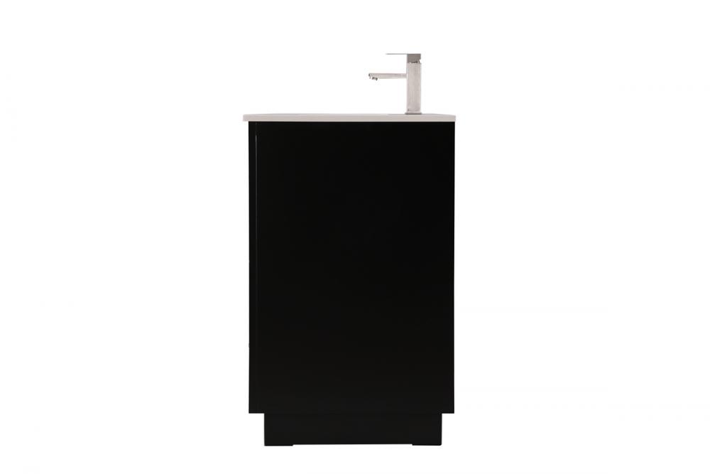 Step into a realm of modern luxury with our freestanding bathroom vanity, featuring a sleek and contemporary boxy design that sets new standards for aesthetics. The engineered marble countertop, with its crisp 0.75-inch straight edge, not only introduces sophistication but also ensures enduring durability. Convenience takes center stage with the undermount porcelain sink, measuring 15.35 inches long, 11 inches wide, and 7 inches deep, complemented by a single predrilled faucet hole for seamless installation. Experience the art of organization through soft-closing drawers and doors adorned with high-quality bar pulls, showcasing meticulous craftsmanship in the precision of butt joint drawers. The vanity, crafted from resilient MDF material, combines elegance with durability, supported by solid wood legs that provide stability and a touch of natural warmth. Elevate your bathroom with this distinctive piece, where the fusion of form and function creates a harmonious dance of modern sophistication, redefining your daily routine with a statement in style and practicality.