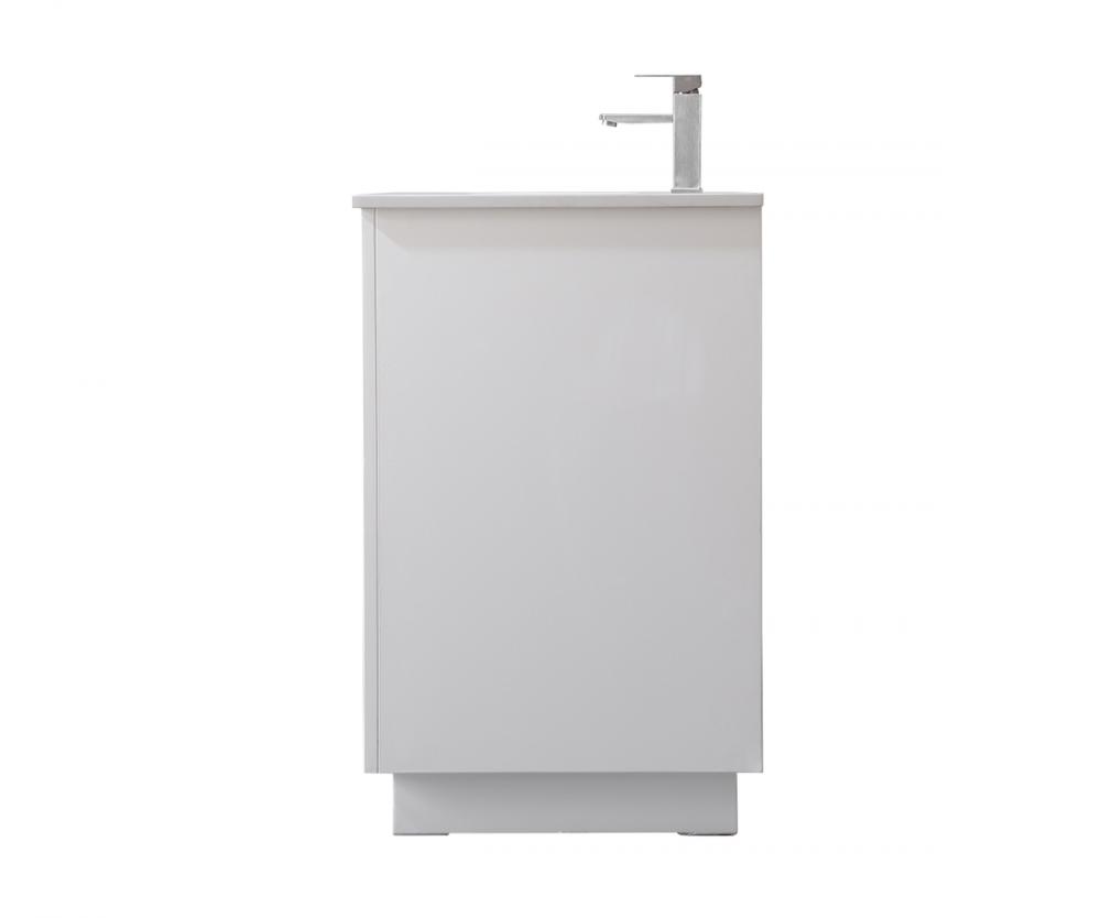 Step into a realm of modern luxury with our freestanding bathroom vanity, featuring a sleek and contemporary boxy design that sets new standards for aesthetics. The engineered marble countertop, with its crisp 0.75-inch straight edge, not only introduces sophistication but also ensures enduring durability. Convenience takes center stage with the undermount porcelain sink, measuring 15.35 inches long, 11 inches wide, and 7 inches deep, complemented by a single predrilled faucet hole for seamless installation. Experience the art of organization through soft-closing drawers and doors adorned with high-quality bar pulls, showcasing meticulous craftsmanship in the precision of butt joint drawers. The vanity, crafted from resilient MDF material, combines elegance with durability, supported by solid wood legs that provide stability and a touch of natural warmth. Elevate your bathroom with this distinctive piece, where the fusion of form and function creates a harmonious dance of modern sophistication, redefining your daily routine with a statement in style and practicality.