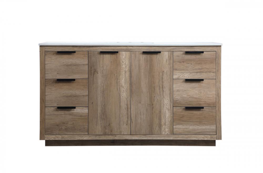 Upgrade your bathroom effortlessly with our stylish 60-inch vanity, showcasing an engineered marble top with a chic straight edge cut. The combination of six functional soft-close drawer and a convenient cabinet offers a perfect balance of design elegance and versatile storage. With an undermount porcelain sink, this vanity seamlessly blends timeless elegance with practical functionality. Adorned with sleek pulls, it adds a modern touch, enhancing the overall aesthetic. With three pre-drilled holes, it allows you to personalize your bathroom by choosing the perfect widespread faucet. Redefine your bathroom experience with this compact yet impactful vanity that optimizes space without compromising style.