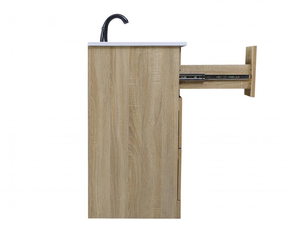 Revel in the beauty of a vanity that mimics the charm of real wood without the maintenance, boasting a faux wood look that adds a touch of natural warmth and rustic sophistication to your bathroom.