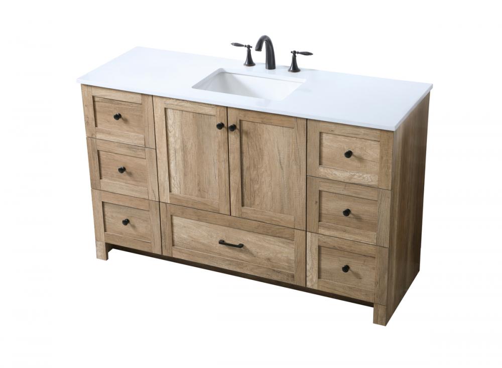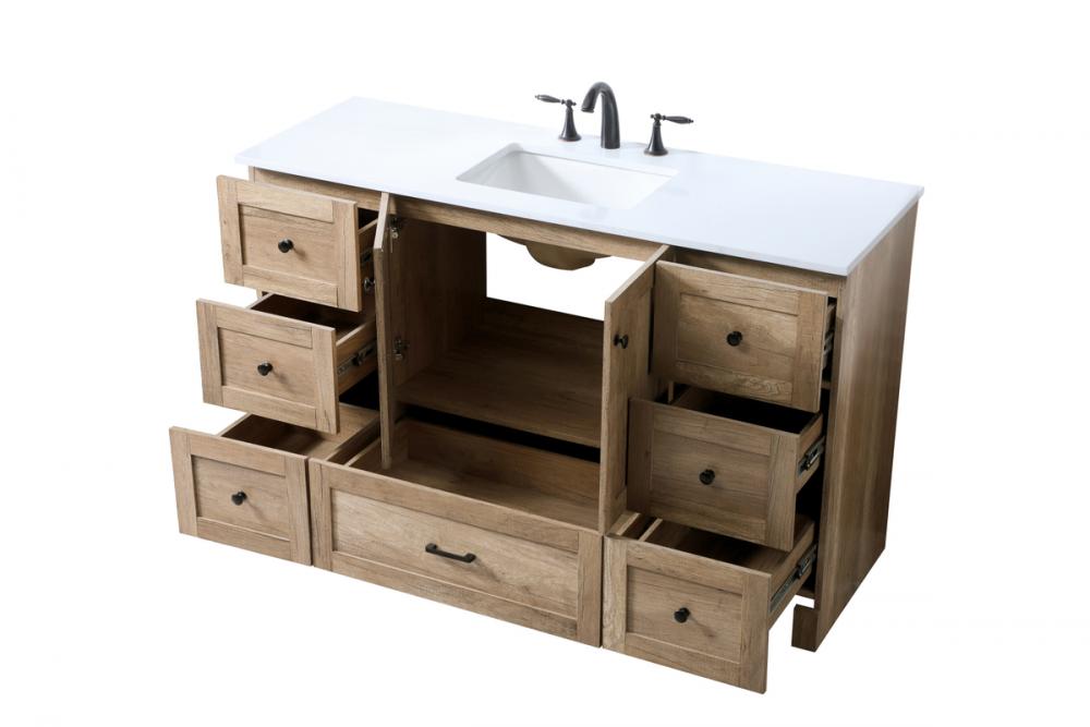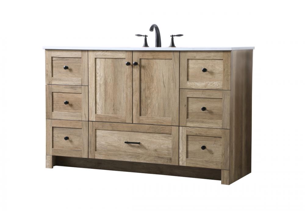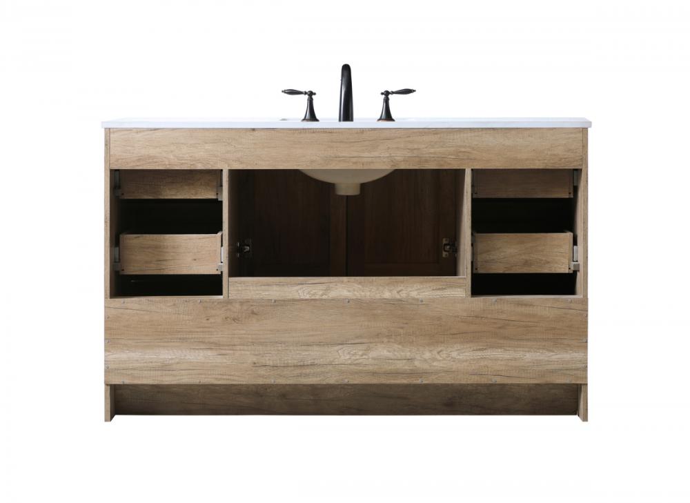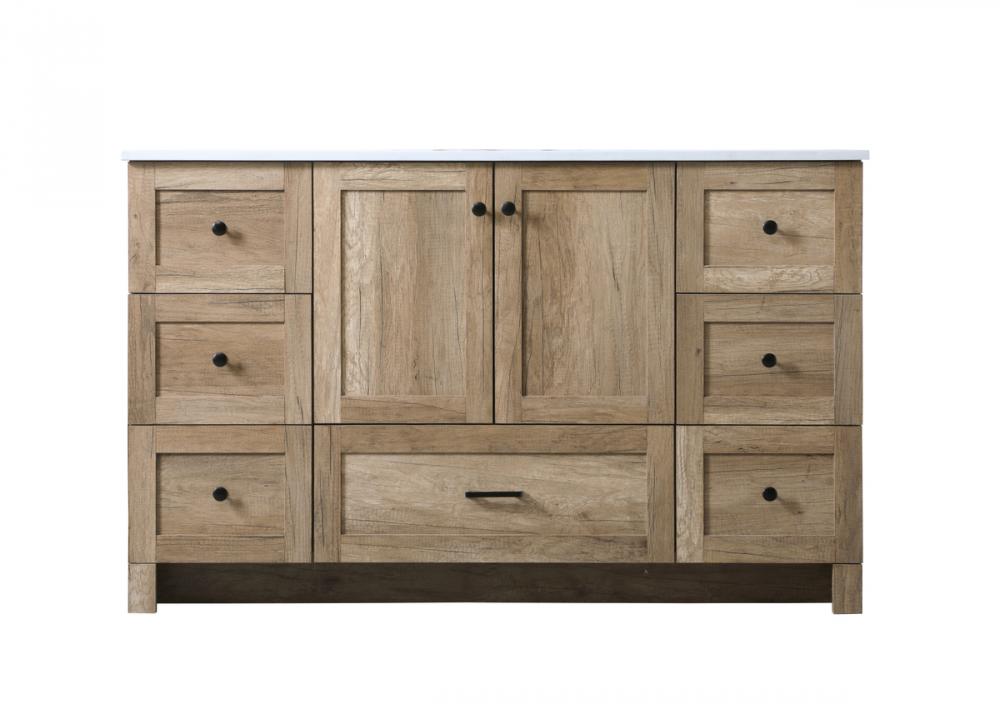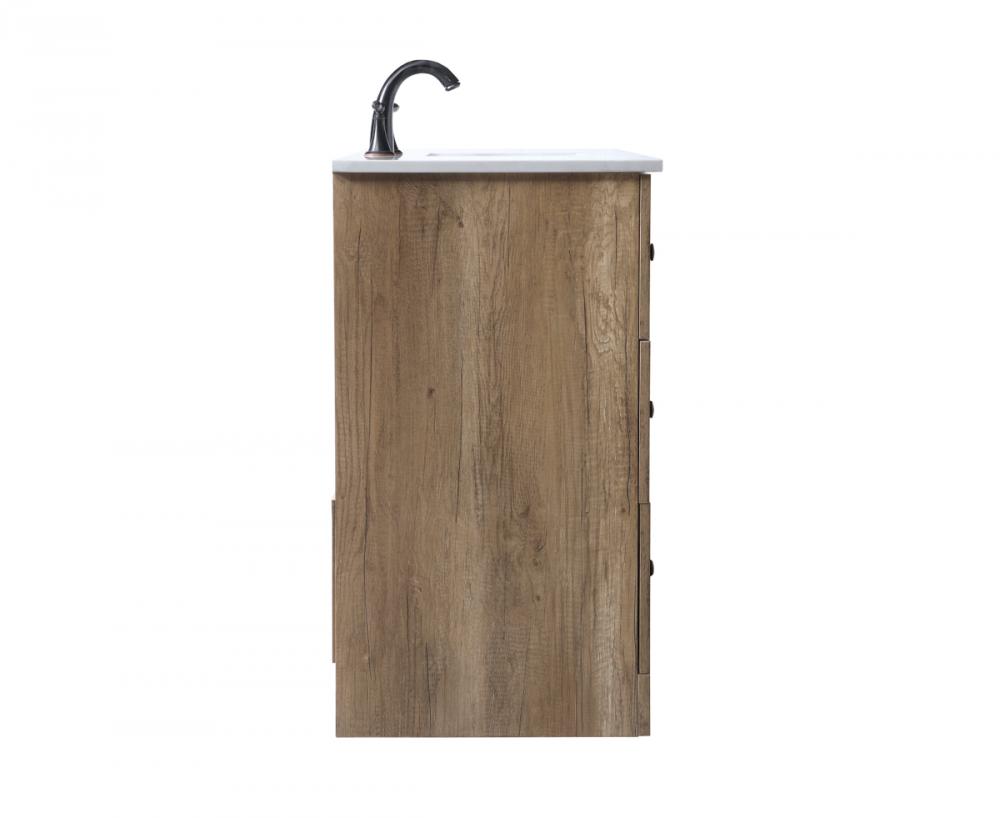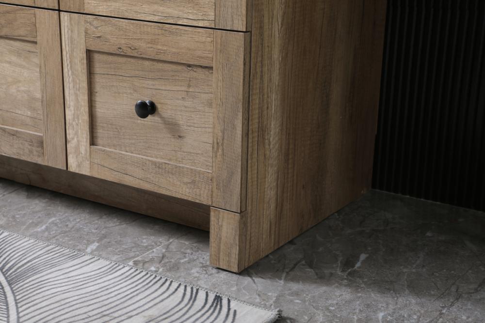 Revel in the beauty of a vanity that mimics the charm of real wood without the maintenance, boasting a faux wood look that adds a touch of natural warmth and rustic sophistication to your bathroom.