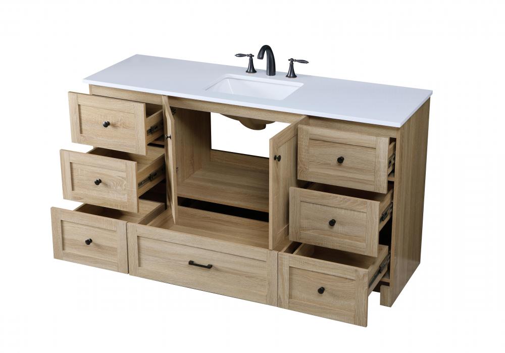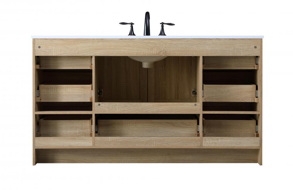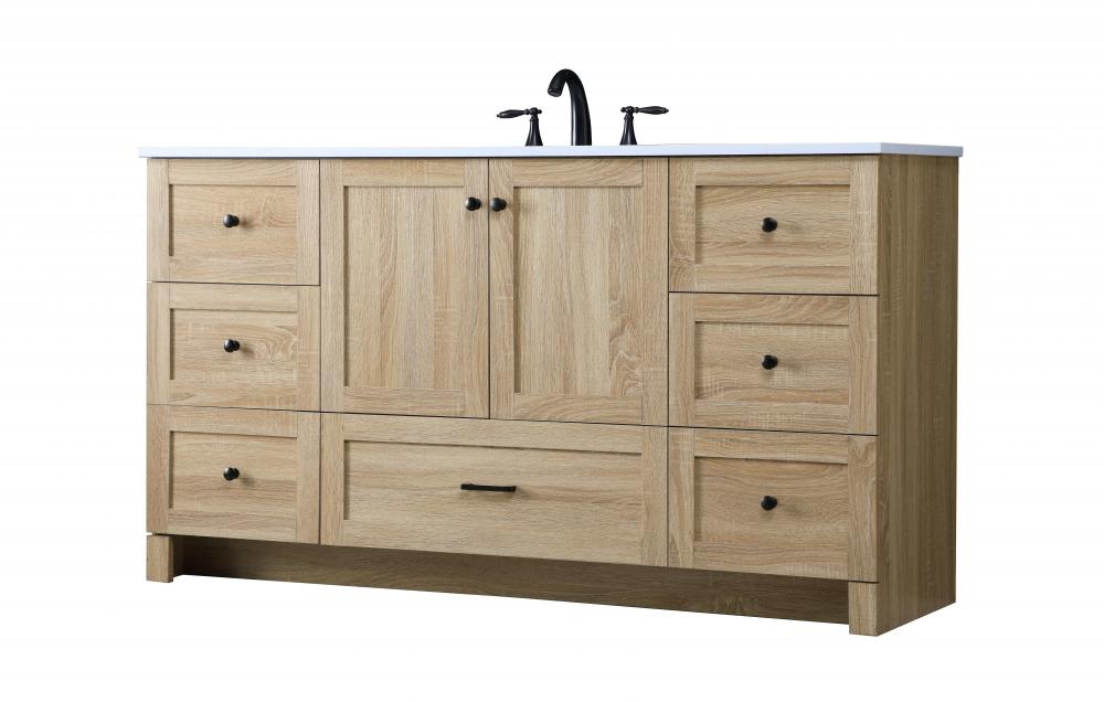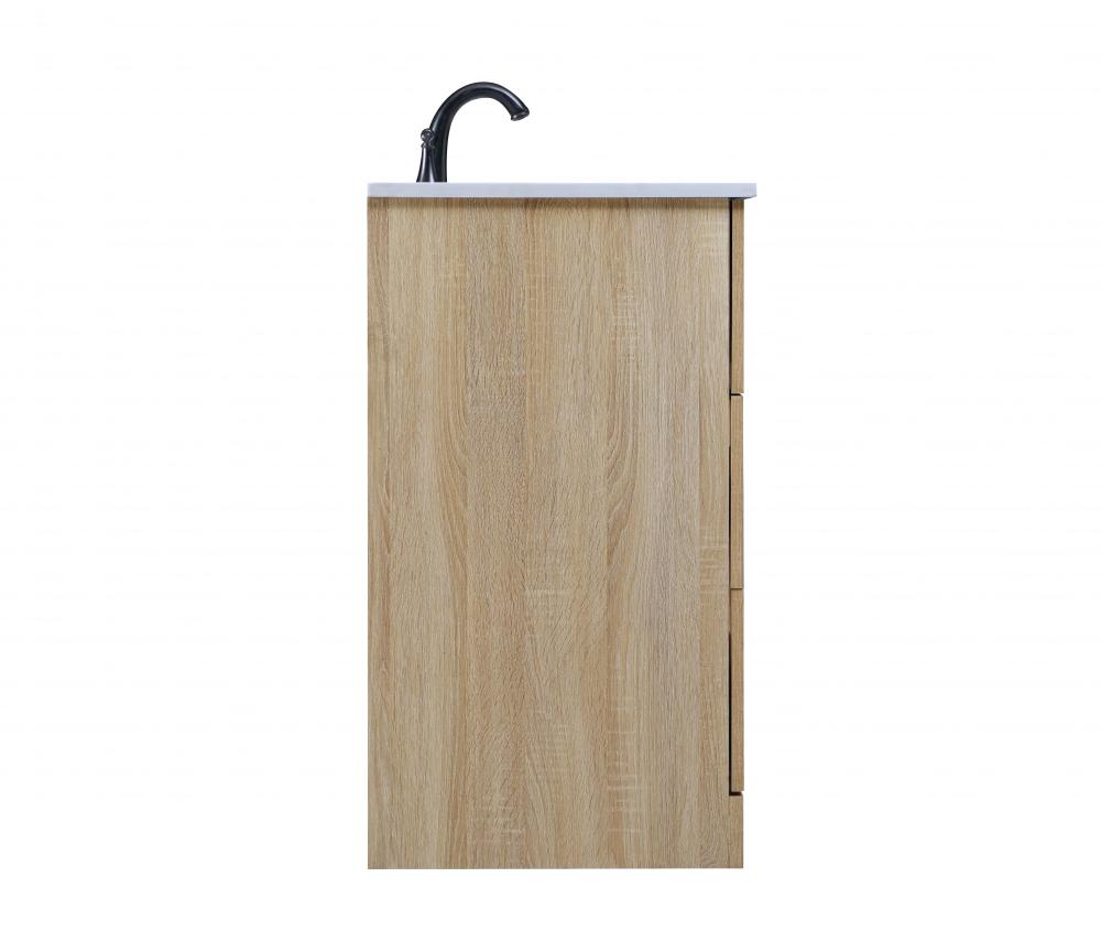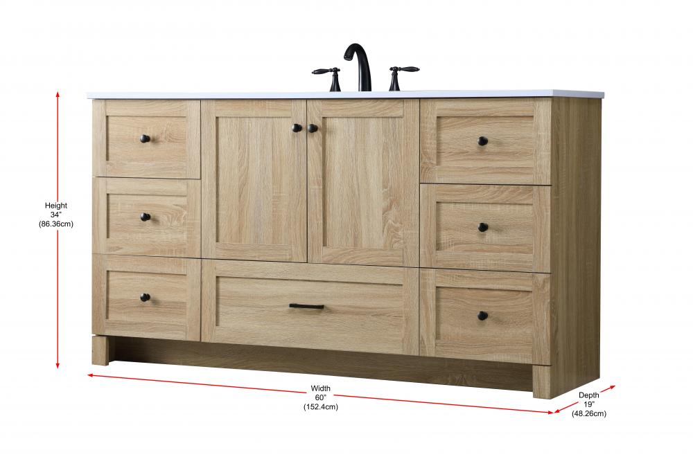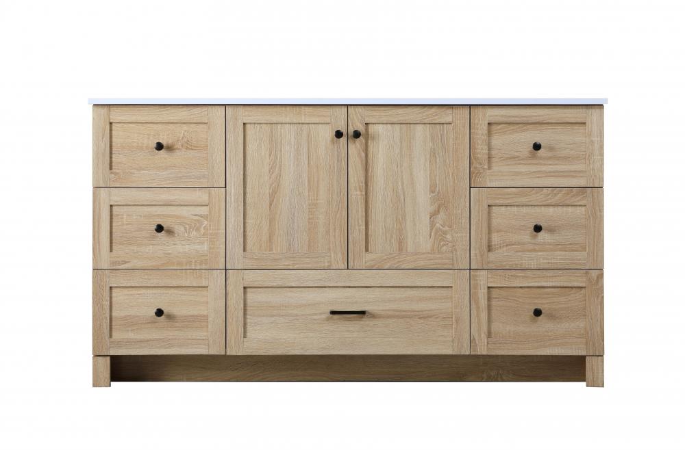 Revel in the beauty of a vanity that mimics the charm of real wood without the maintenance, boasting a faux wood look that adds a touch of natural warmth and rustic sophistication to your bathroom.