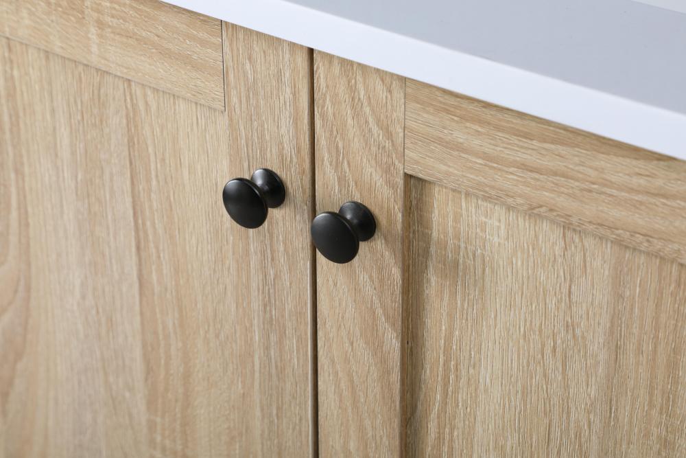 Indulge in the details with high-quality knobs and pulls adorning the drawers and doors, adding a touch of sophistication and functionality to your vanity.