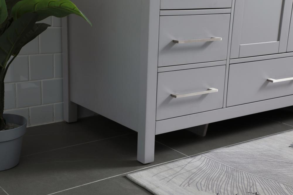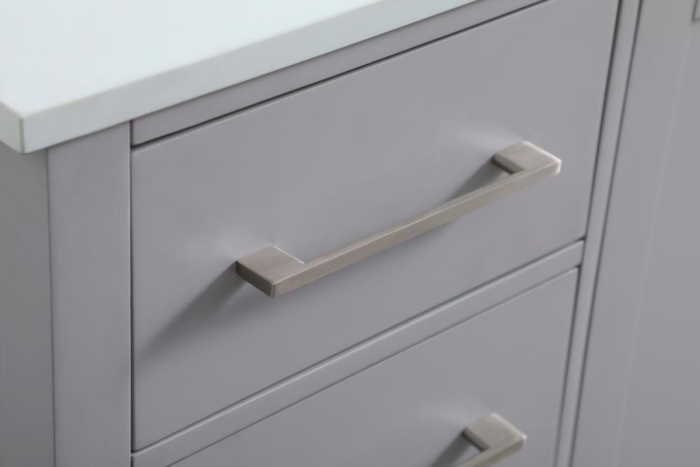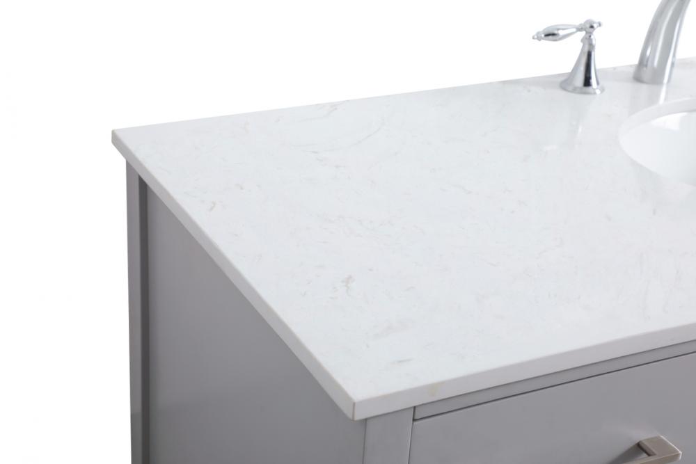 Never compromise beauty--the Irene collection stunning vanity will add lovely sophistication and complement any bathroom or powder room, while utilizing its charm and function to provide you with ample storage spaces. Brushed nickel pulls gently adorn the minimalist cabinet doors and drawers at the base, allowing for you to store away your bathroom essentials. The calacatta engineered marble countertop, porcelain undermount sink, dignified subtle engravings on the side edges, and squared legs all come together to create contemporary beauty. Work with your space, and design a beautiful room, no matter the size.