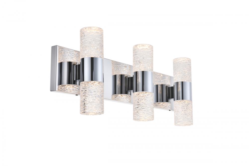 Immerse yourself in the beautiful Vega 3-light wall lamp in a sleek chrome finish. The intrigue of the lights shining through make it seem as if the entire fixture is glittering with celestial allure and will have you and your guests gazing in awe. Just as a star in the midnight sky, this wall lamp will surely shine brightly in your home, guiding you to your location, whether within your hallways, bathroom, or powder room.