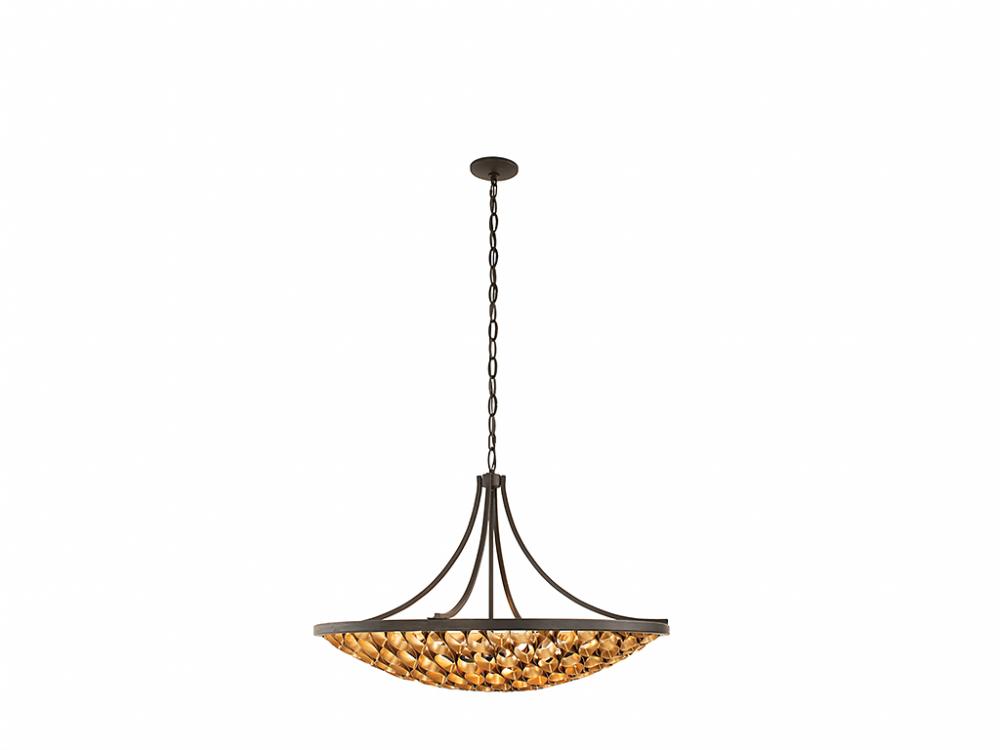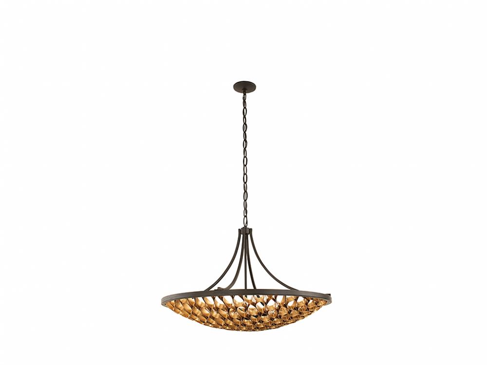 Use this Savoy House Ventura 8-light pendant to brighten up any room with alluring nature-inspired style. Its shade is crafted from a mesmerizing pattern of open raindrop-shaped metalwork that is finished in gold, which is paired with matte black for even more intrigue. Ventura is 25.5" in height and 36" in width. It uses 8 candelabra size bulbs of up to 60 watts each (bulbs not included).