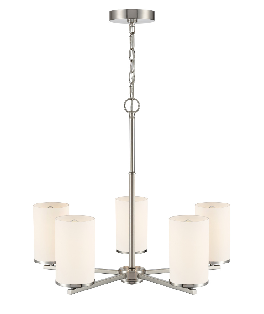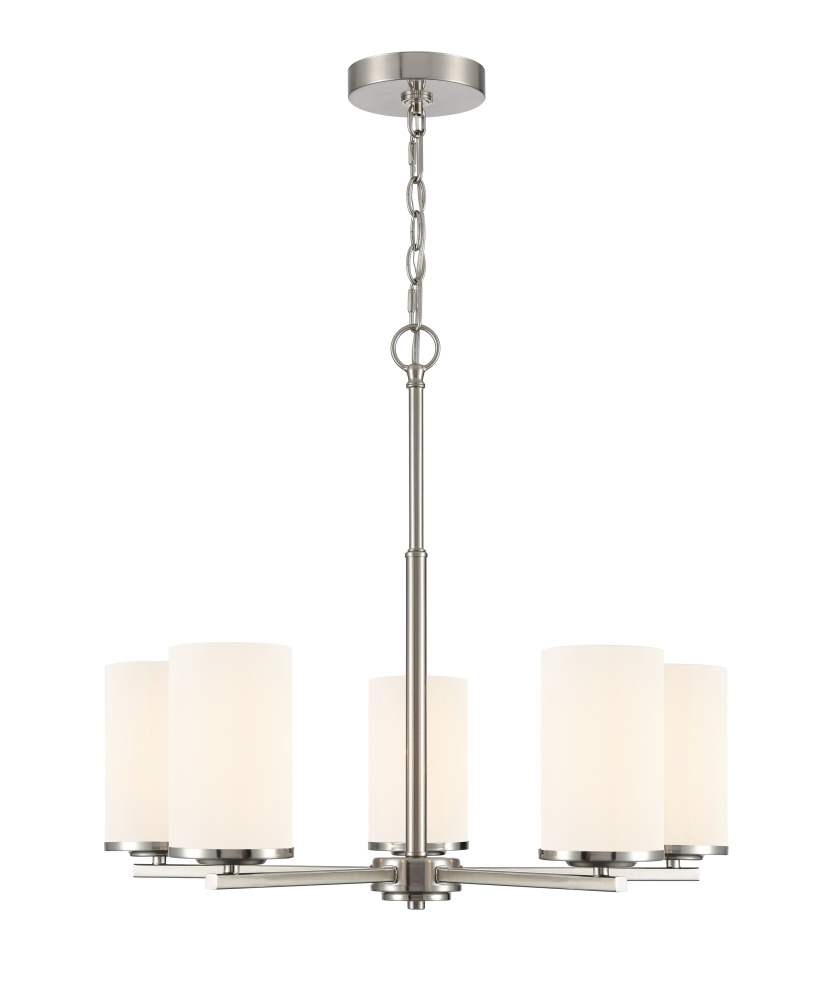 Striking industrial design springs to life with the sumptuous style of the Verlana Family creating the perfect solution for any interior from Scandinavian simplicity to Mid-Century Modern. Cylindrical shades, in clear or white glass, perfectly compliment the sleek lines of these luminaires finished in brushed nickel, chrome, matte black, or modern gold. Available as 1-light sconce, 1-light mini pendant; 2, 3, or 4-light vanity, 2-light semi-flush mount, 5-light island; or 3 or 5-light chandelier, these splendid fixtures set a sophisticated tone for any interior scheme.