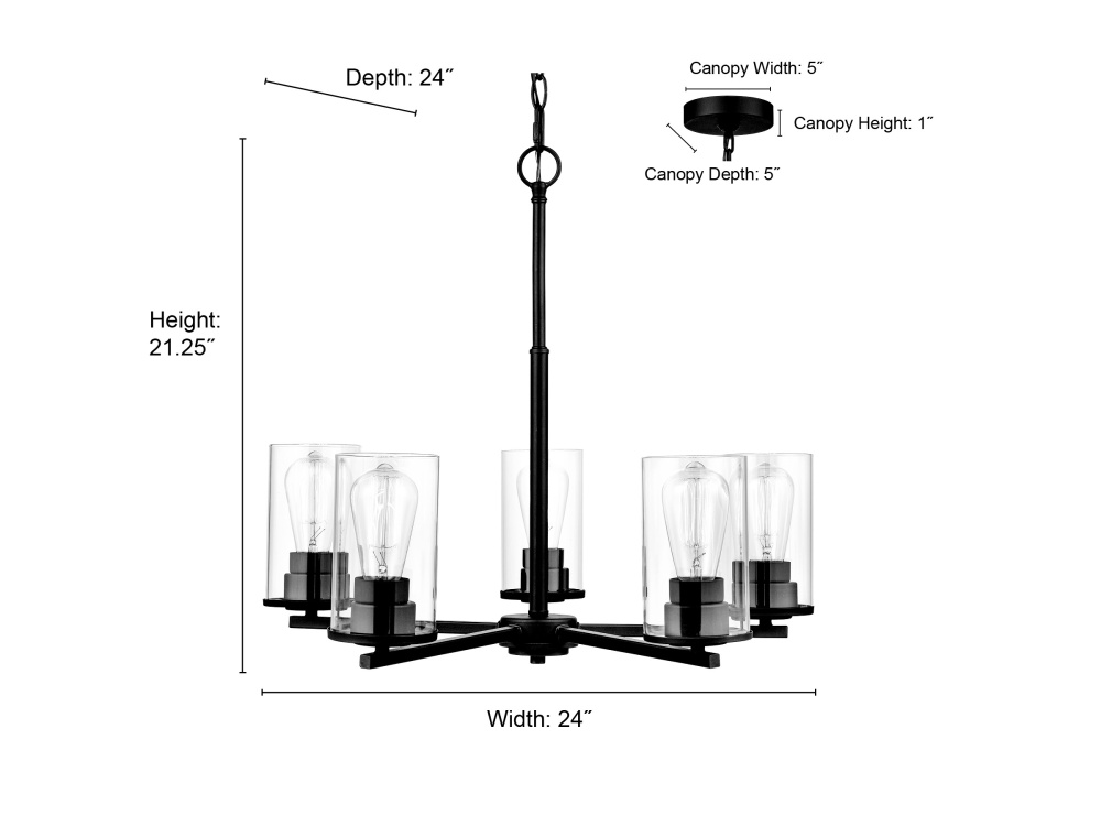 Verlana 35" 5-Light Linear Chandelier - Matte Black