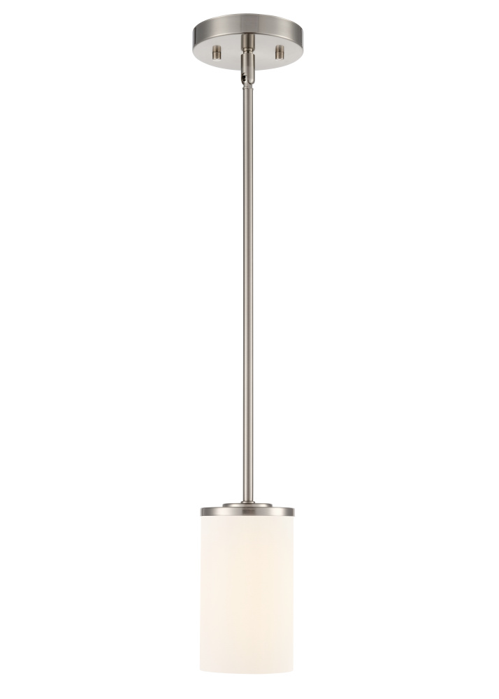 Striking industrial design springs to life with the sumptuous style of the Verlana Family creating the perfect solution for any interior from Scandinavian simplicity to Mid-Century Modern. Cylindrical shades, in clear or white glass, perfectly compliment the sleek lines of these luminaires finished in brushed nickel, chrome, matte black, or modern gold. Available as 1-light sconce, 1-light mini pendant; 2, 3, or 4-light vanity, 2-light semi-flush mount, 5-light island; or 3 or 5-light chandelier, these splendid fixtures set a sophisticated tone for any interior scheme.