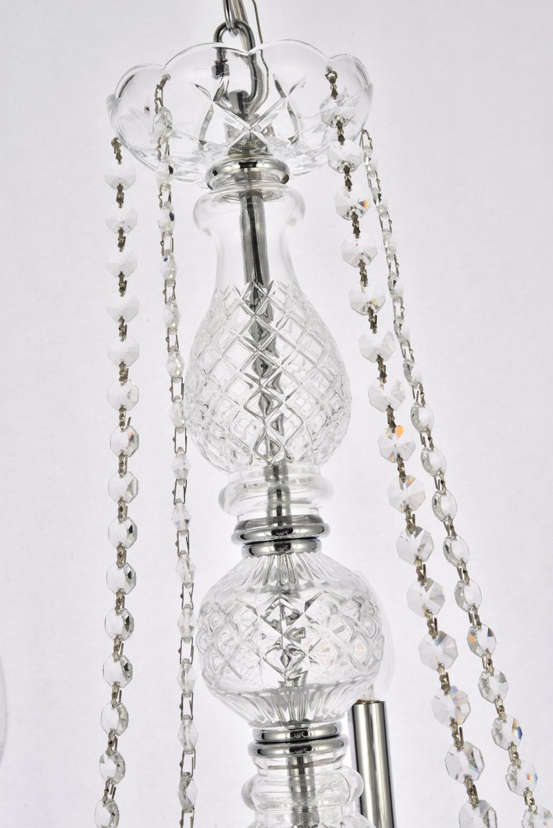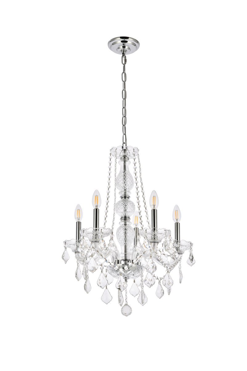 A perfect blend of elegant style and practical functionality, these fixtures in the Verona collection allow you to create an ambiance of grandeur in a relatively cozy space. The intricate cut-crystal center columns support five undulating arms that culminate in bright candelabra lights (not included) on crystal bobéches. The chandeliers also feature beautiful ornamentation which combines crystal beads, balls, rings, and pendeloques. Available with a variety of finishes and many different types of crystal.