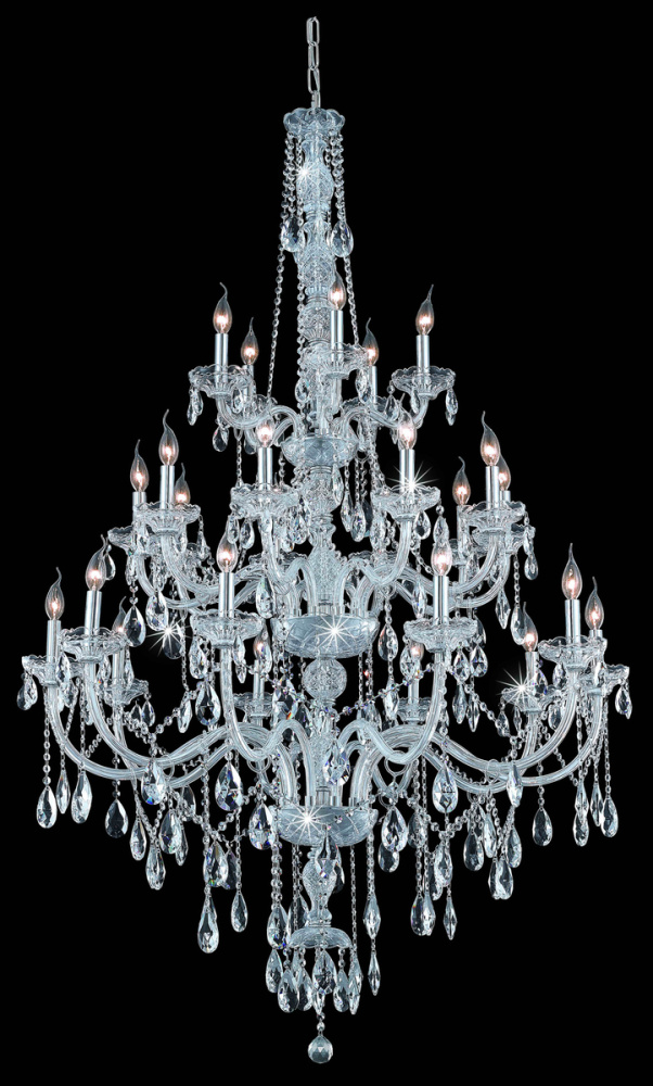 The spectacular chandeliers in the Verona collection are the height of elegance and style – and in this case, literally: These gorgeous fixtures tower to almost six feet high, and their impressive visual impact is further enhanced by a fabulous array of features and ornamentation. The intricate cut-crystal center columns support three tiers of graceful arms that hold 25 candelabra lights (not included) and crystal bobéches, along with draped crystal beads, balls, rings, and pendeloques. Available with a variety of finishes and many different types of crystal.