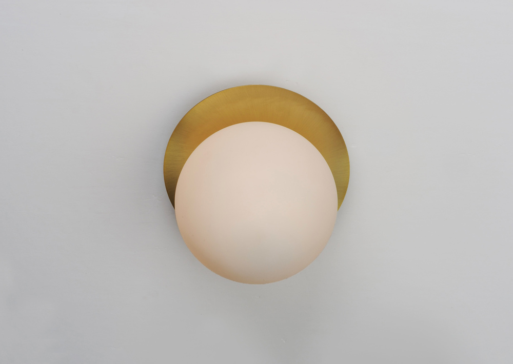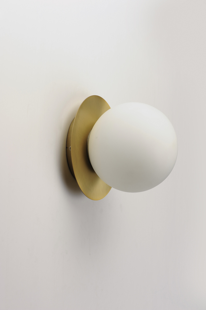 Inspired by both Mid Century Modern and Scandinavian Contemporary this collection spans a large breadth of today's interior design. Straight tubing finished in Satin Brass supports hand blown Satin White cased glass globes. Black accents of metal and B