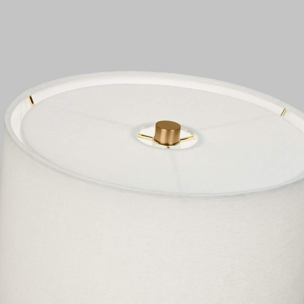 Fabric white linen shade illuminates the subtle, earthy finish