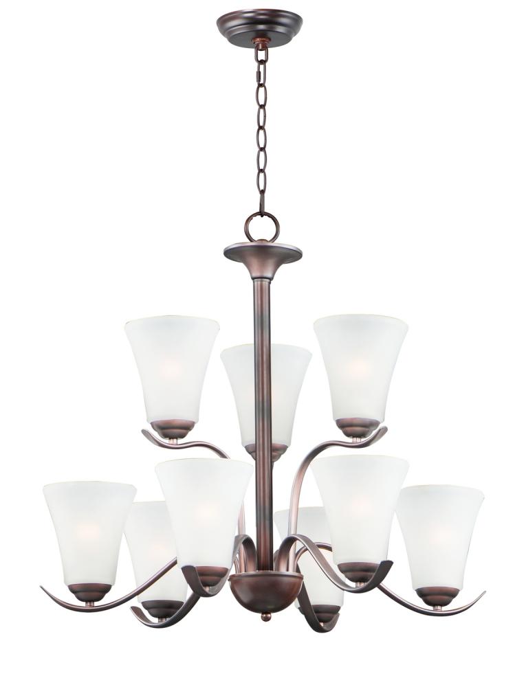 Gently waving arms of Satin Nickel or Oil Rubbed Bronze support tall-profile Frosted glass shades creating a scale normally not found in this category of lighting. The bath vanity may be installed up or down and also includes a Polished Chrome finish.