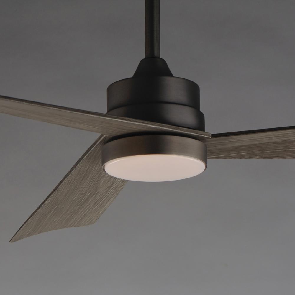 Sharp angular blades come together at the center housing of this fan for a modern, yet transitional look. Available in finishes that match most interior spaces, select from Matte Black, Satin Nickel with Greywood, Natural Aged Brass with White Blades and C