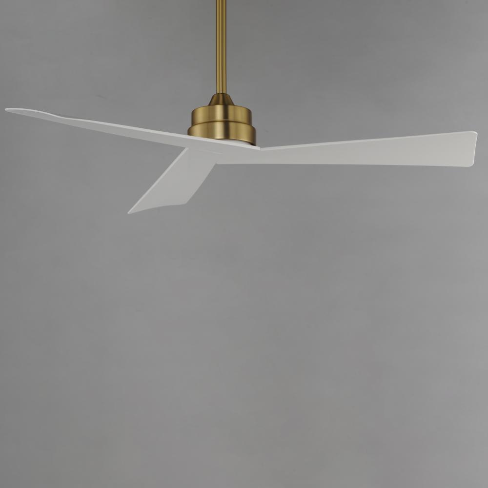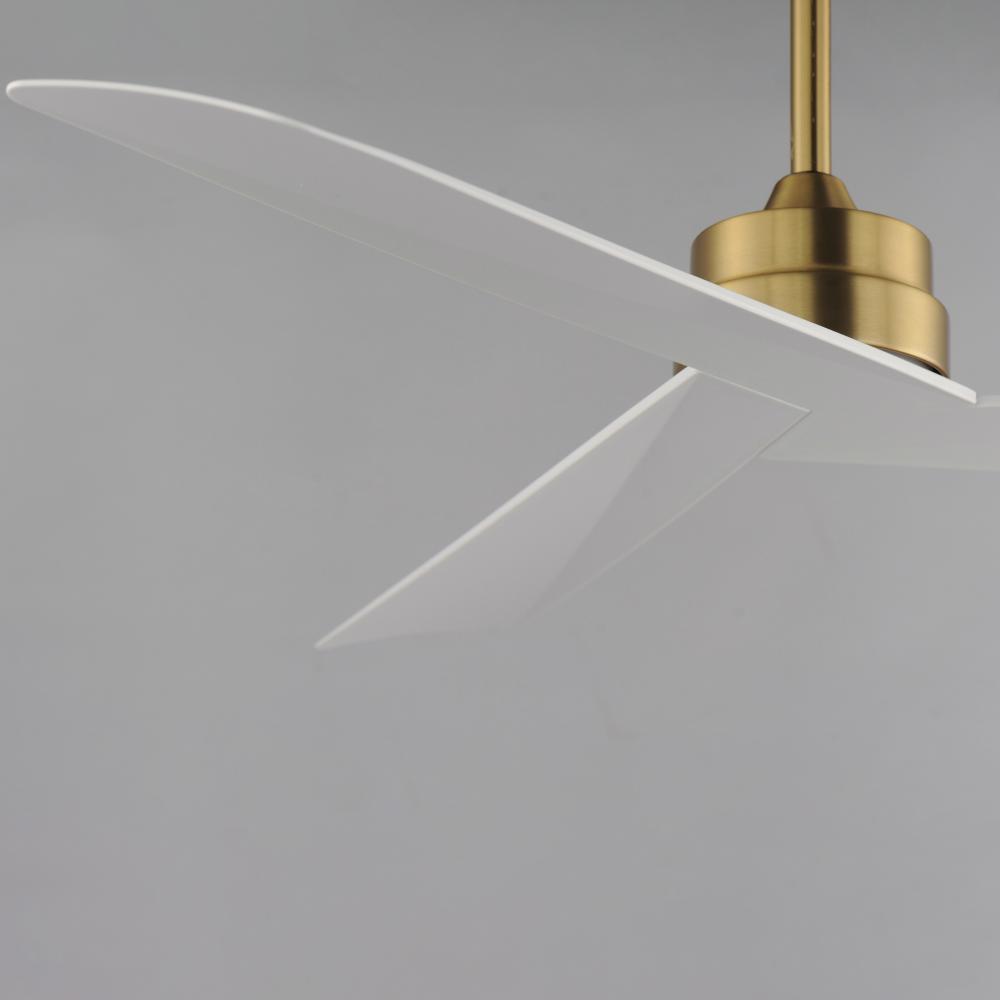 Sharp angular blades come together at the center housing of this fan for a modern, yet transitional look. Available in finishes that match most interior spaces, select from Matte Black, Satin Nickel with Greywood, Natural Aged Brass with White Blades and C