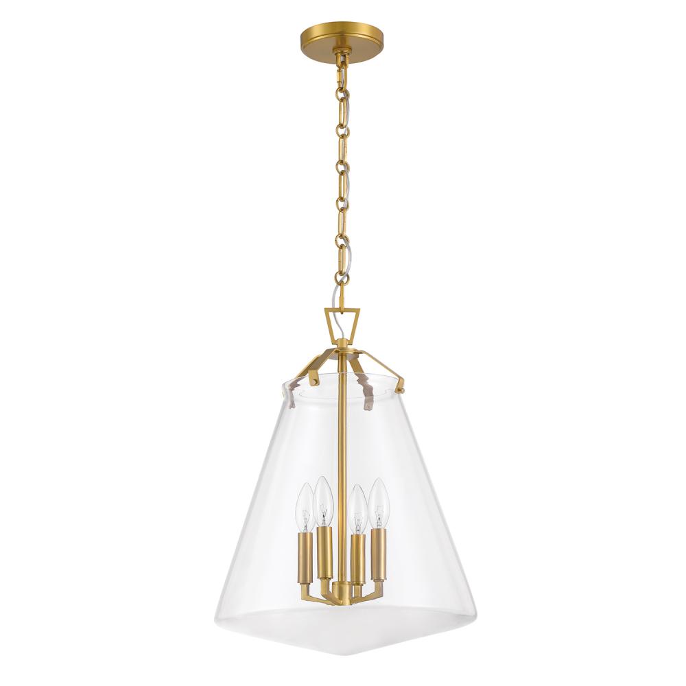 The Voss Collection is a sleek, enduring design with subtle angular details, offered in various finishes and sizes for your unique space. It’s clear glass cone-shaped pendant is closed on the bottom and fastened with metal on its open top. The patterned chain detail adds a touch of character to its streamlined design. The Voss Collection is not confined to a single style; it is a versatile design that suits a variety of spaces, from minimalist and modern to classic and eclectic.