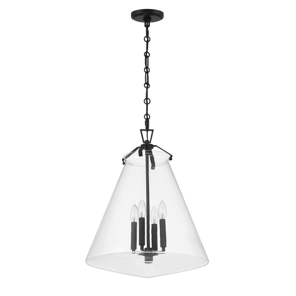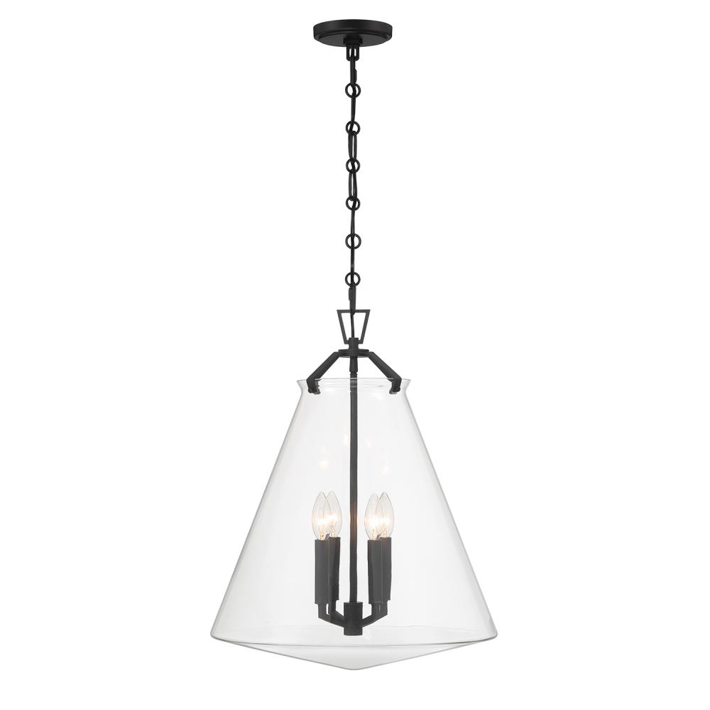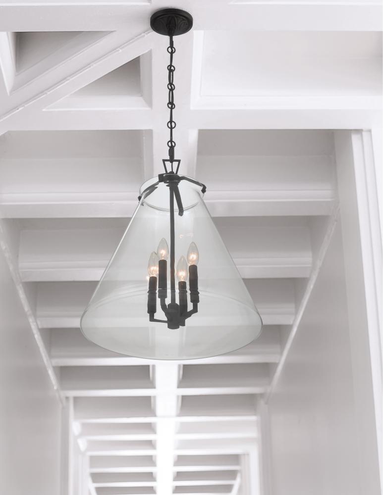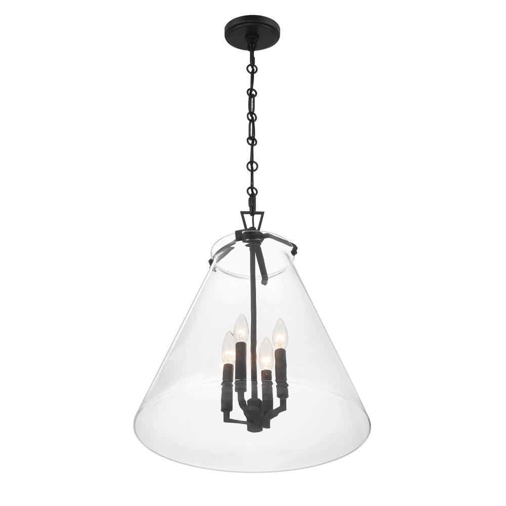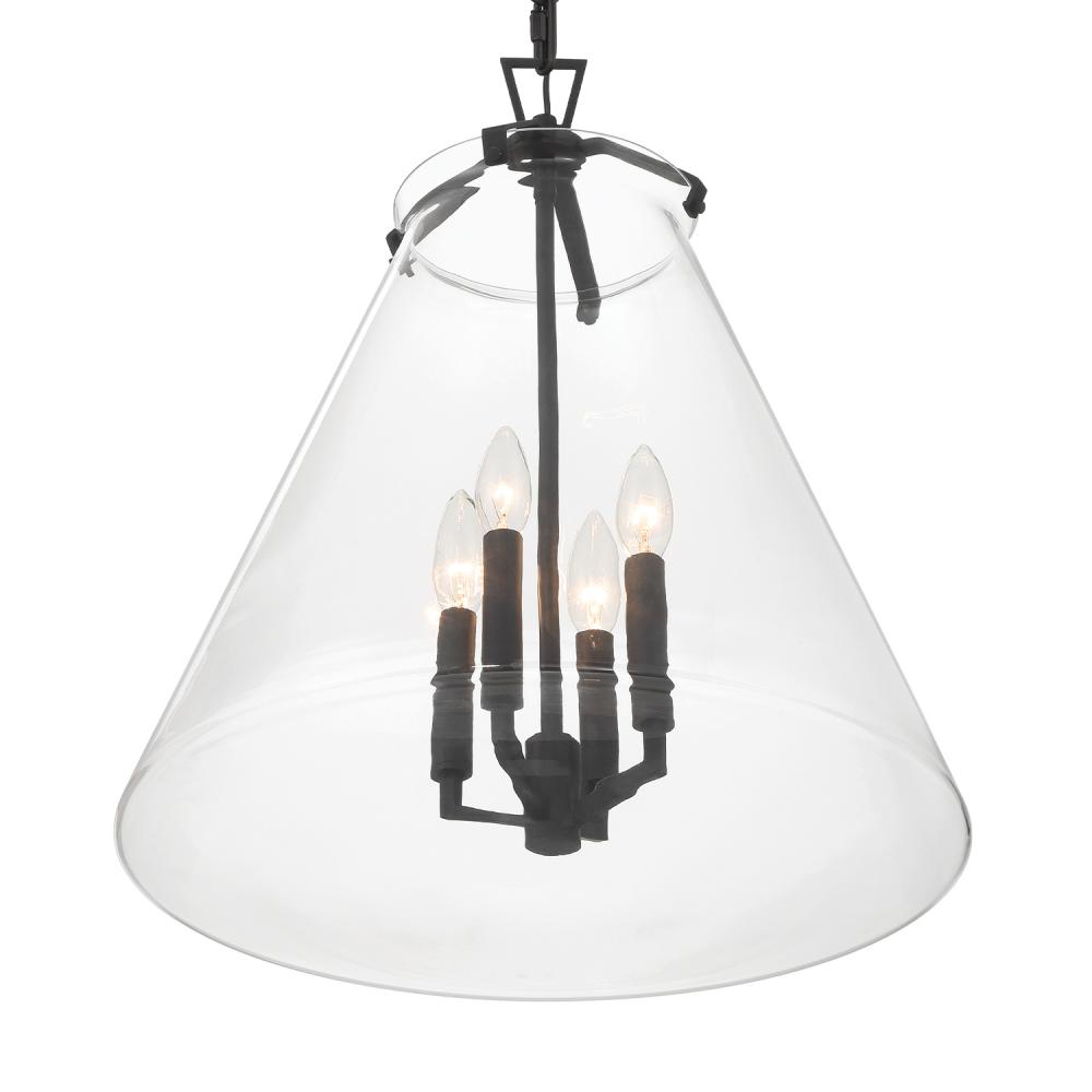 The Voss Collection is a sleek, enduring design with subtle angular details, offered in various finishes and sizes for your unique space. It’s clear glass cone-shaped pendant is closed on the bottom and fastened with metal on its open top. The patterned chain detail adds a touch of character to its streamlined design. The Voss Collection is not confined to a single style; it is a versatile design that suits a variety of spaces, from minimalist and modern to classic and eclectic.