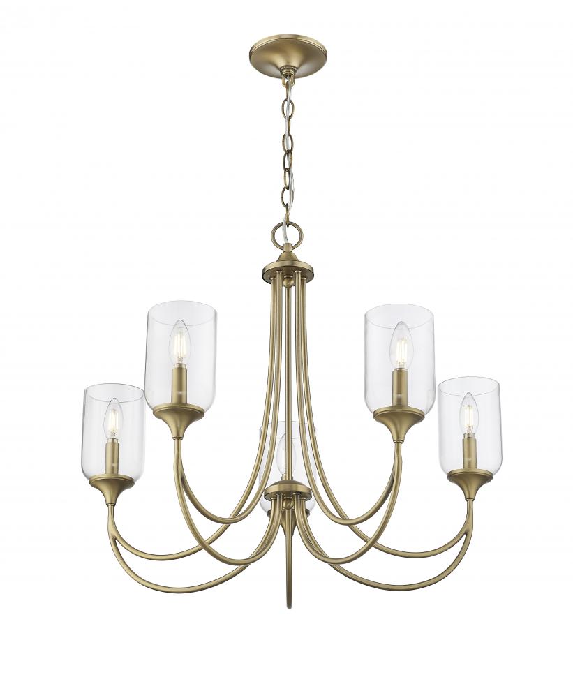 The Waddingham Family of chandeliers is the definition of refined elegance. Available as either a 5- or 9-light option, these chandeliers add understated charm to any space from foyer to dining room. With sweeping arms and sparkling clear glass shades, these tasteful fixtures, finished in either matte black or vintage brass, are the perfect design solution for modern to classic interior schemes.