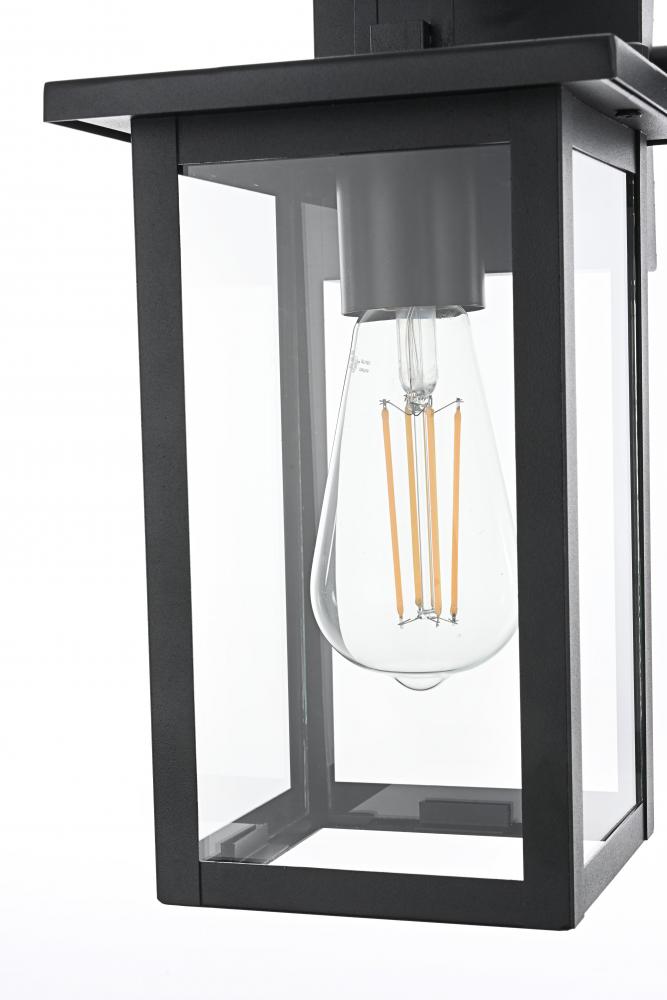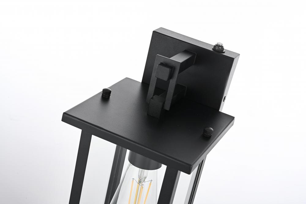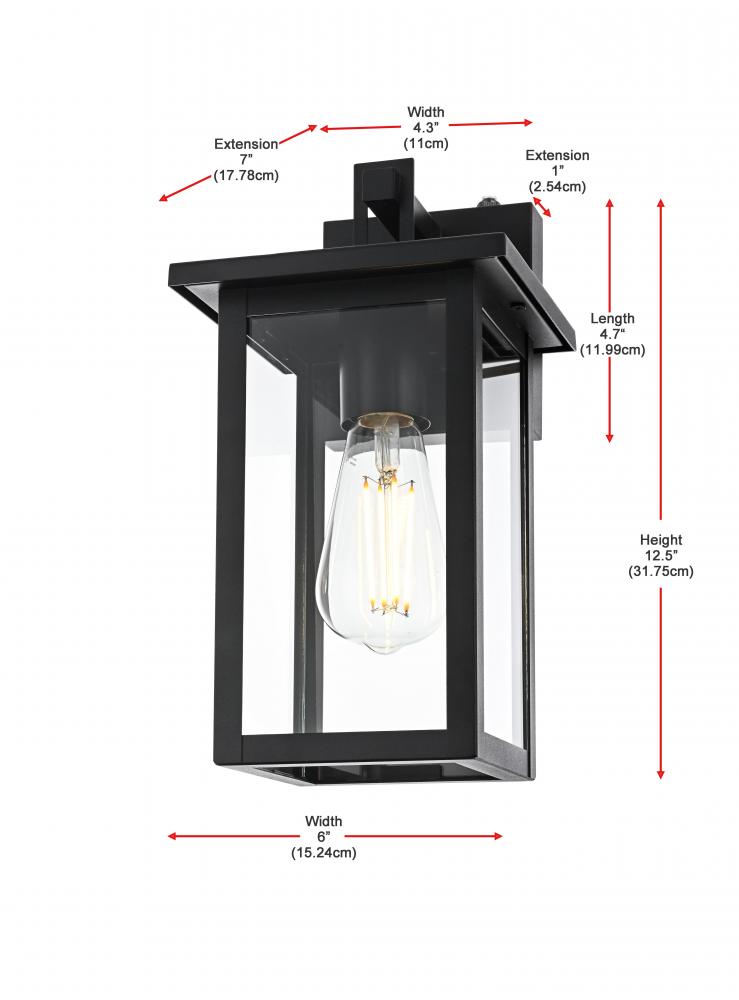 This modern outdoor wall sconce combines simplicity and functionality to enhance your home's exterior. Crafted with durable iron and crystal-clear glass panels, it brings a sleek and modern touch that will withstand the elements while delivering outstanding style. Its linear rectangular frame, paired with a timeless black finish, makes it the perfect addition for enhancing the architectural appeal of porches, entryways, or patios. The transparent glass panes give an uninterrupted view of the warm bulb, creating a welcoming ambiance for your outdoor spaces. The built-in dusk to dawn sensor ensures that your home remains well-lit at night while saving energy during the day by automatically turning the light off at sunrise.