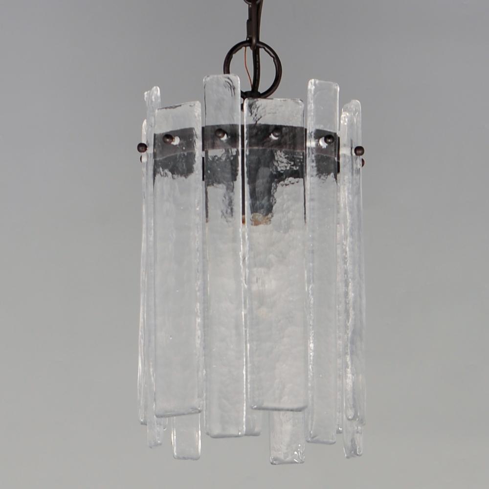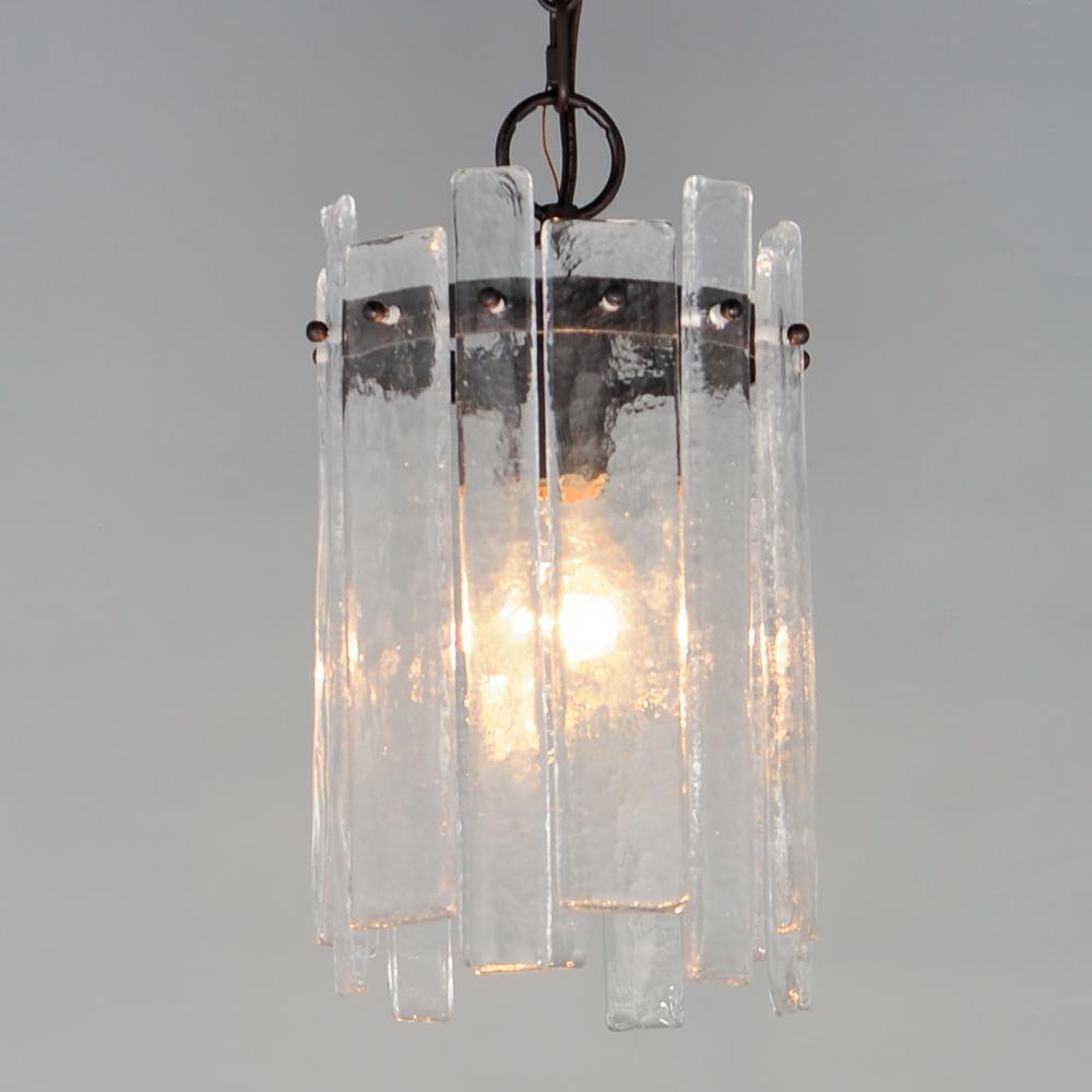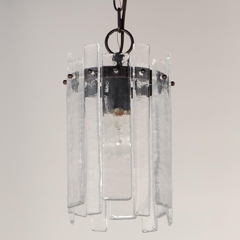 Gracefully flowing molten glass panels with uniquely organic aesthetic encircle rings of rich Darkened Bronze metal or hand-applied Gold Leaf. This refined interpretation of tiered glass pendants exudes warmth and elegance, effortlessly blending a moody am
