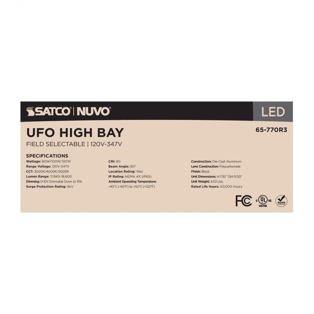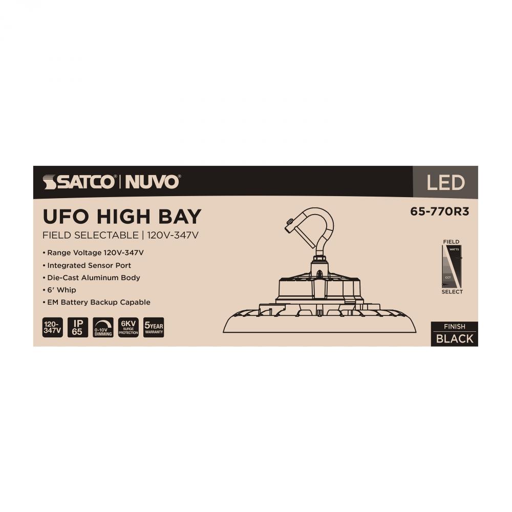 SATCO NUVO's 65-770R3 Round High Bay Field Selectable fixture in a black finish, offers an energy efficient and low-maintenance alternative to traditional HID fixtures. This luminary is field selectable, giving users the flexibility to choose from thre