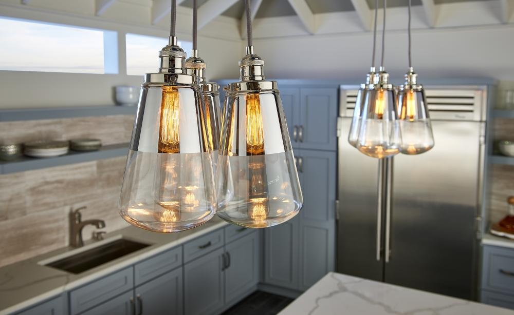 The Waveform one light mini pendant in polished nickel provides abundant light to your home while adding style and interest. Each light fixture in the modern Waveform pendant collection is an elegantly simple, conical blown glass pendant with a closed bottom. Vacuum-plated metal detailing adds a rich, contemporary design element around the crown of each fixture to help conceal the light source. The Polished Nickel finish is coupled with the Silver Vacuum Plated glass, and the dual Painted Aged Brass with Dark Weathered Zinc finish is coupled with the Gold Vacuum Plated glass. Available is a 1-Light Mini-Pendant and 1-Light Pendant.
