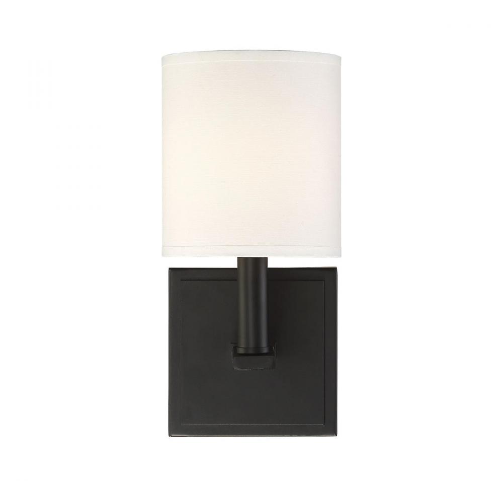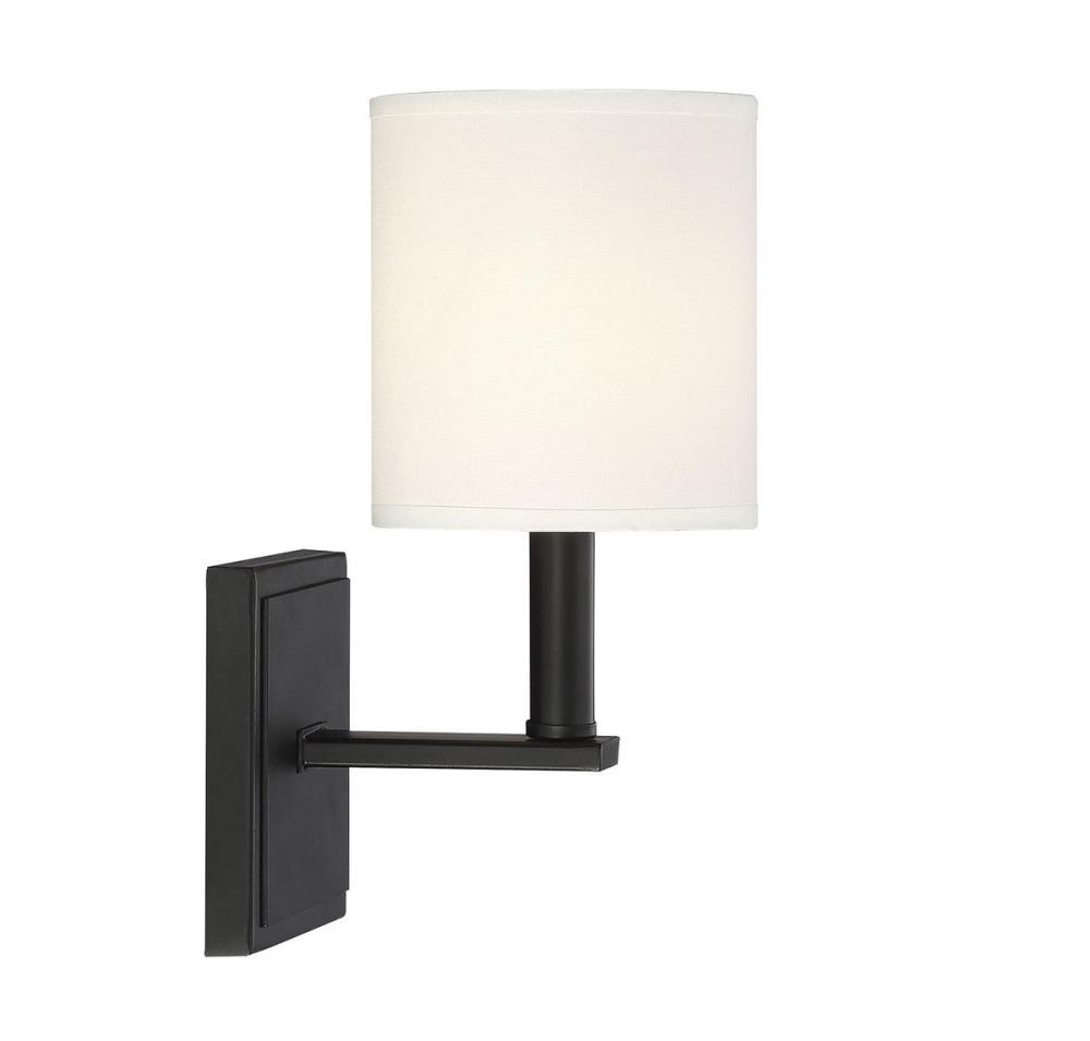 Chic and contemporary! The Waverly wall sconce is a sleek fixture to add a beautiful, polished layer of light to your home’s overall interior lighting design. Plus, the clean lines and soft glow create a subtle and serene mood. The frame has an outlined, square wall plate and a bold, L-shaped light arm, with an on-trend, matte black finish. A streamlined, cylindrical white shade encloses one 60W, C-style bulb for lovely, glare-free illumination. The Waverly’s elegance blends well with many decor styles, such as modern, farmhouse, and transitional. And the sconce measures 5” wide and 11” high, extending 6.5” from the wall —an ideal fit for a bathroom, bedroom, dining area, living room, kitchen, family room, foyer, media room, office, or hallway.