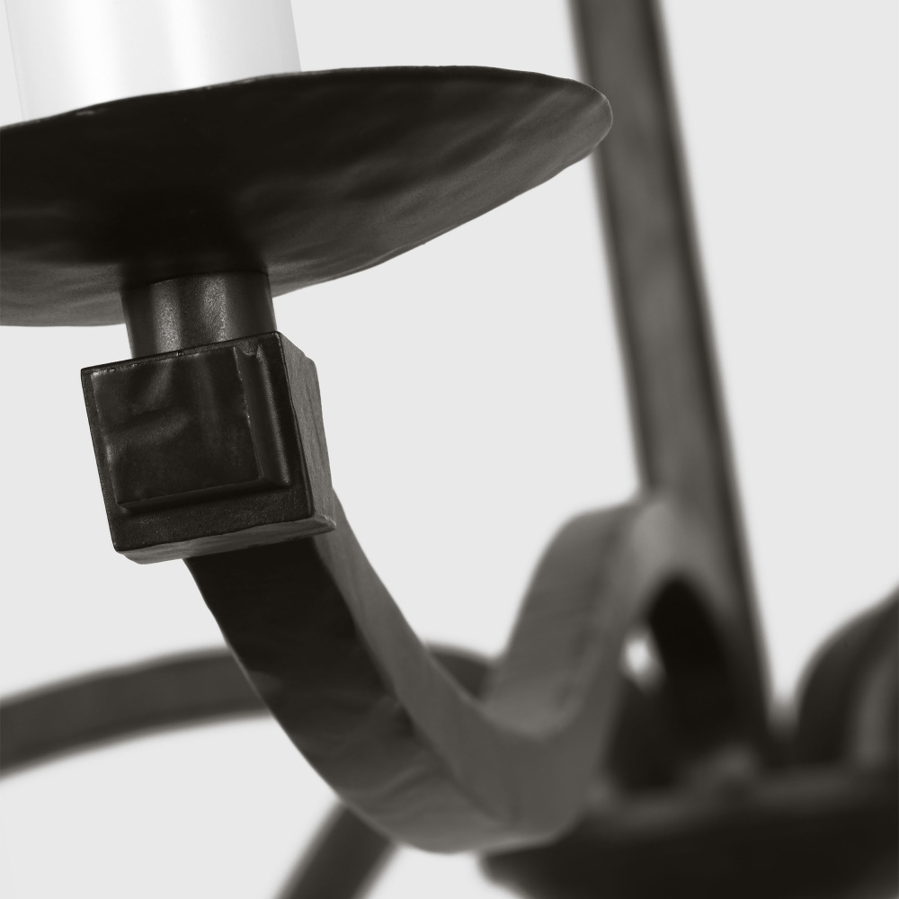 The Wellen series by Chapman & Myers beautifully merges the artistry of traditional blacksmith techniques with modern design sensibilities. Constructed from square iron tubes, the chandelier’s gracefully curved arms evoke a sense of refined craftsmanship. Intricate details such as the top loop, brackets, and candle cups further enhance its timeless aesthetic. The Wellen chandelier's classic silhouette is perfect for adding a touch of elegance and sophistication to traditional, vintage-inspired, and transitional interiors. Ideal for dining rooms, living spaces, or entryways, this piece transforms any room into a warm and inviting space with its understated yet striking design.