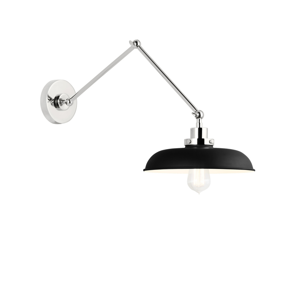 The Wellfleet one light wall sconce by Chapman & Myers is inspired by various classic utility silhouette’s - from factory lighting to barn sconces - capped by contrasting metal hardware. Each shade of the Wellfleet collection is available multiple sizes of 3 versatile profiles; either a flat farm dome, a traditional factory dome, or tapered cone. The shades are available with either a black or white finish and are paired with either a burnished brass or polished nickel collar, chain and canopy.