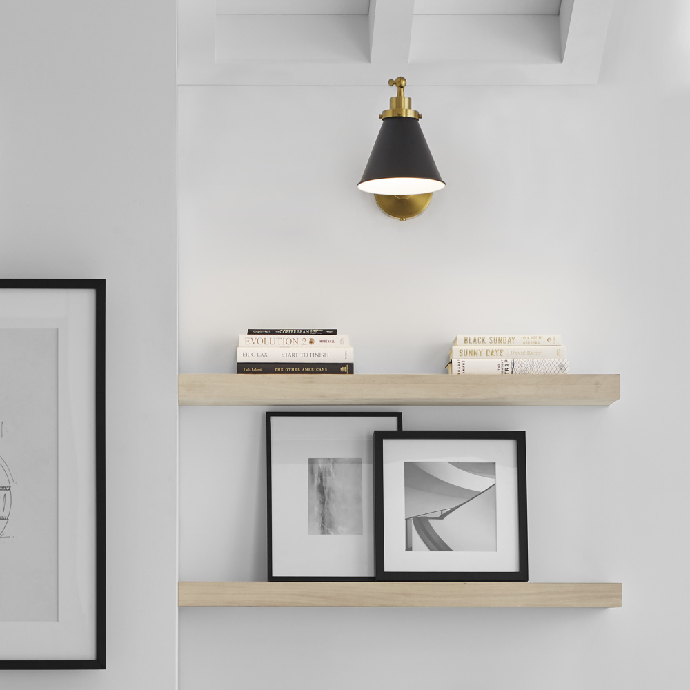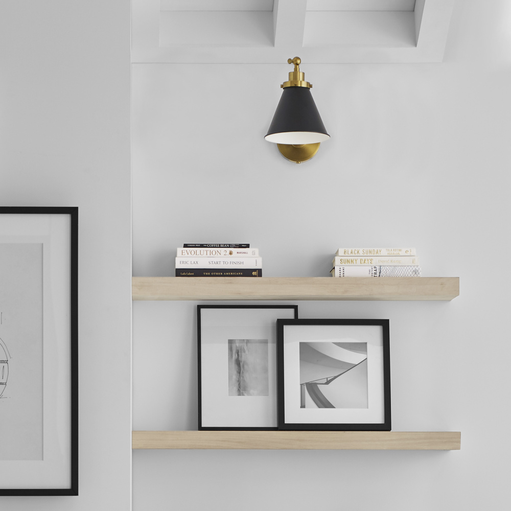 Available in four finish combinations: Matte White with Burnished Brass or Polished Nickel and Matte Black with Burnished Brass or Polished Nickel