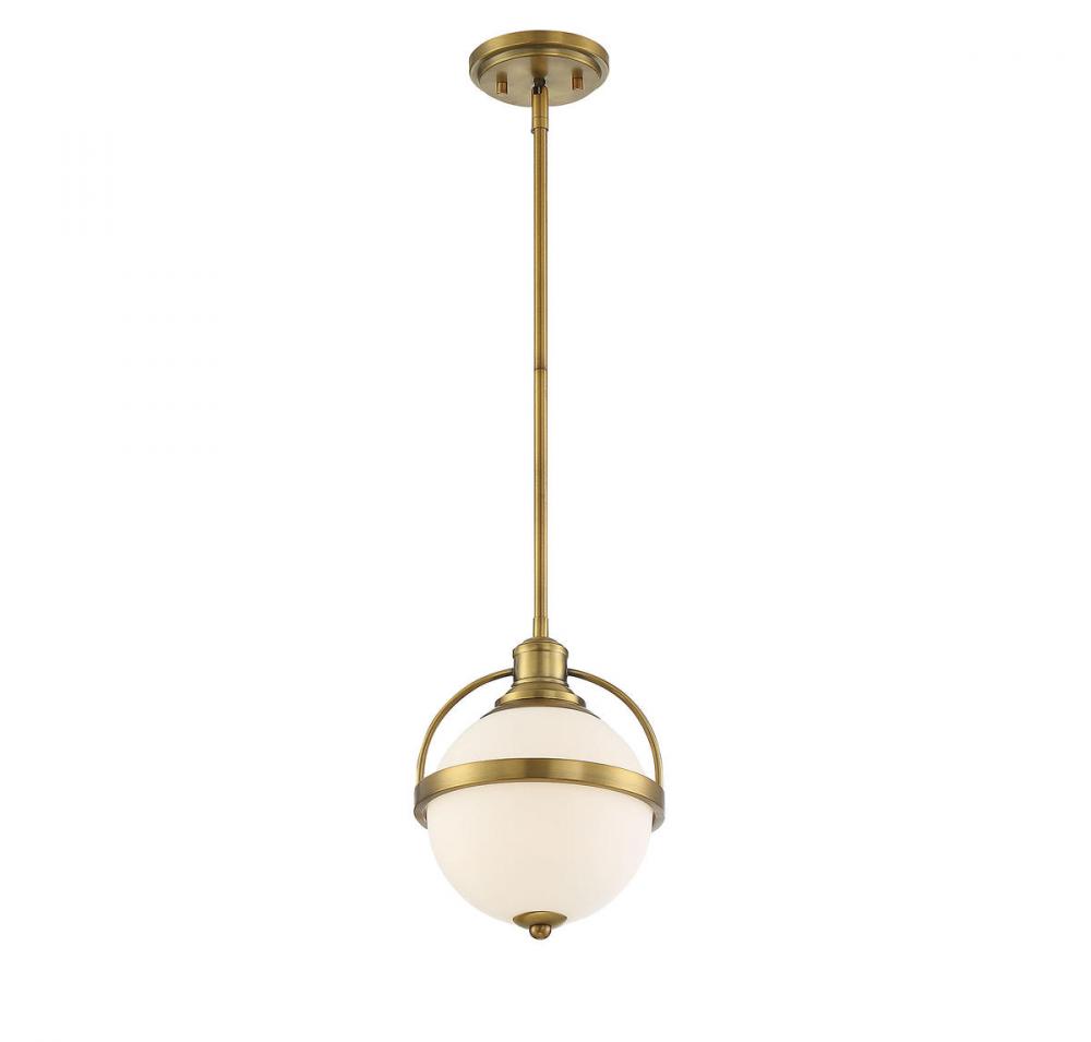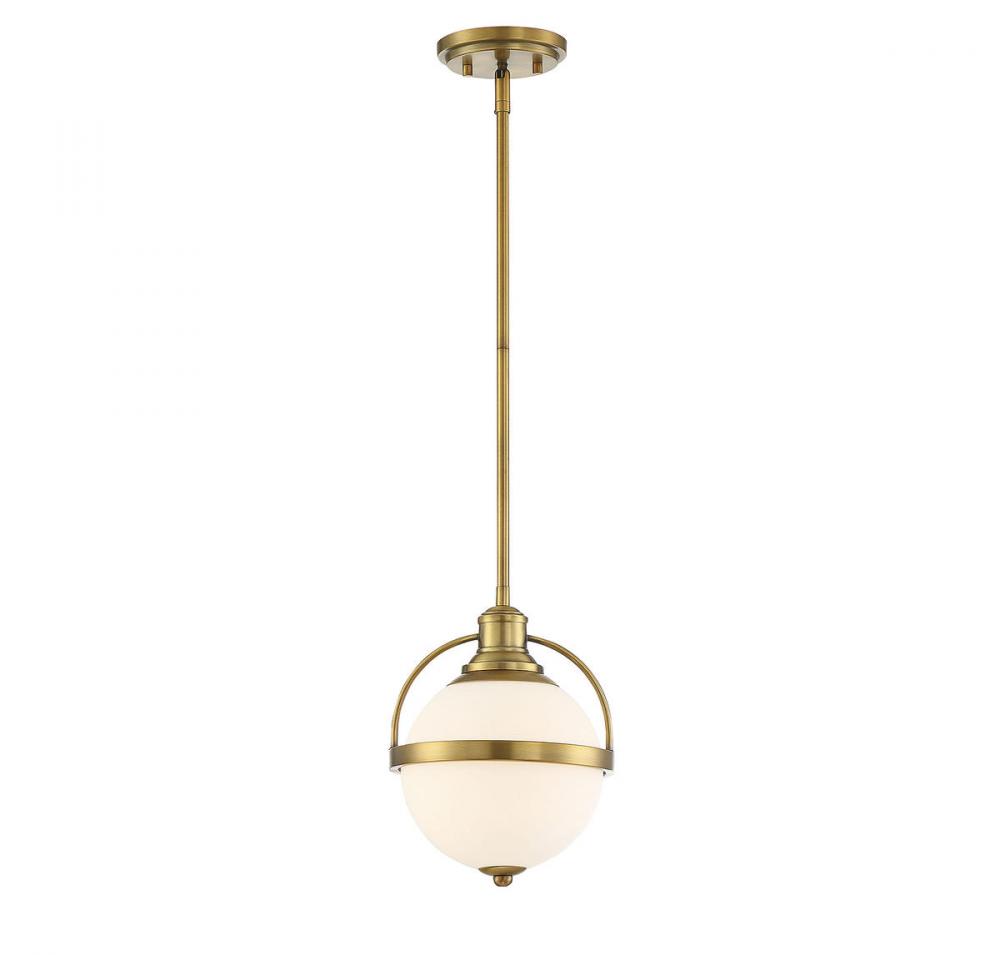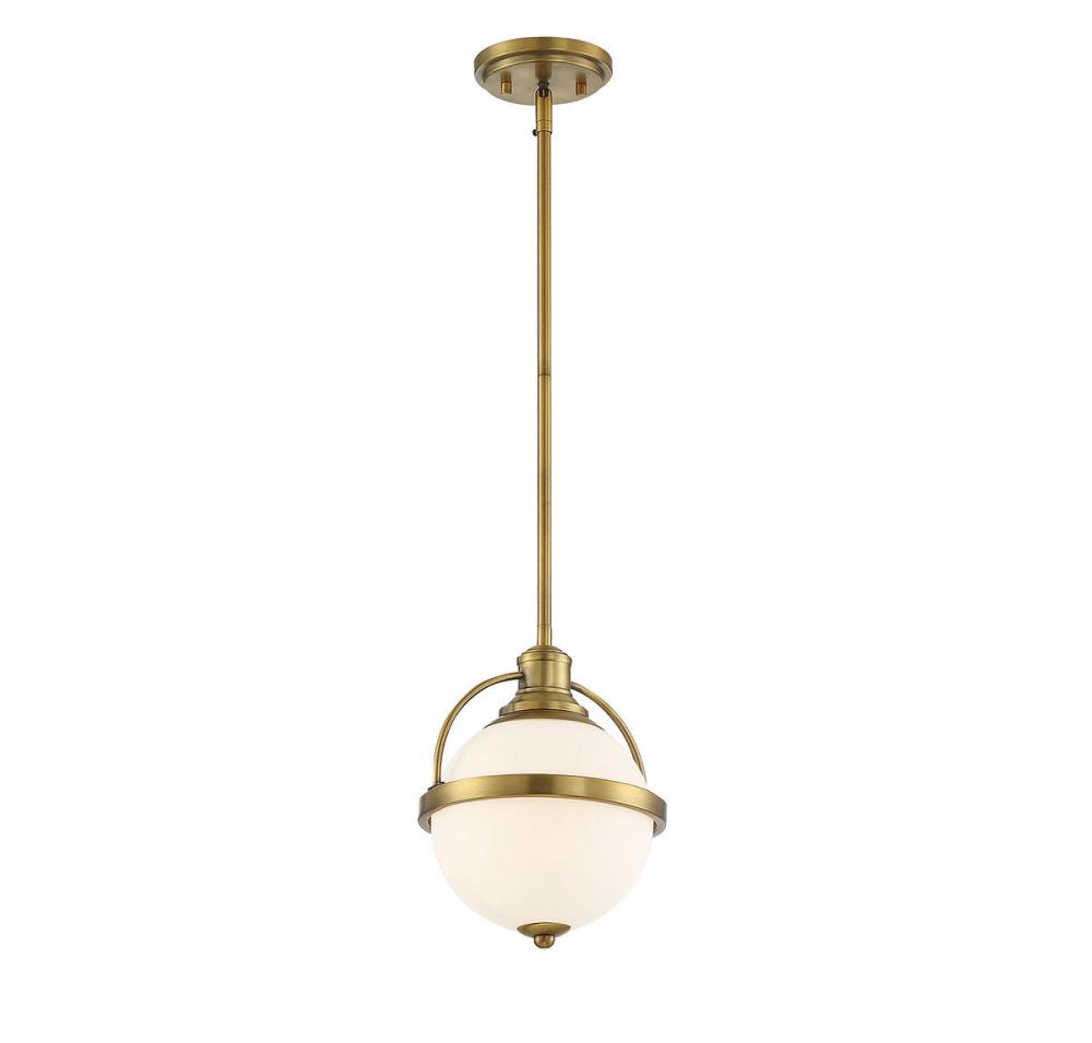 Vintage lighting style is updated for today's interiors in this Westbourne 1-light mini pendant by Savoy House. A white opal glass shade is accentuated with thoughtful detailing and a rich warm brass finish. Mini pendants are very versatile and can be used in many different indoor spaces, including kitchens, foyers, offices, great rooms, bedrooms and even bathrooms. The hanging height is adjustable and it can be used on a sloped ceiling. Bulb not included. The warm brass finish can be matched with brass hardware or mixed with hardware in other finishes. Westbourne pendants are a perfect match for transitional style rooms, but great for classic style as well! When you choose a Savoy House lighting fixture, you can be certain you've selected a piece that will withstand the test of time.